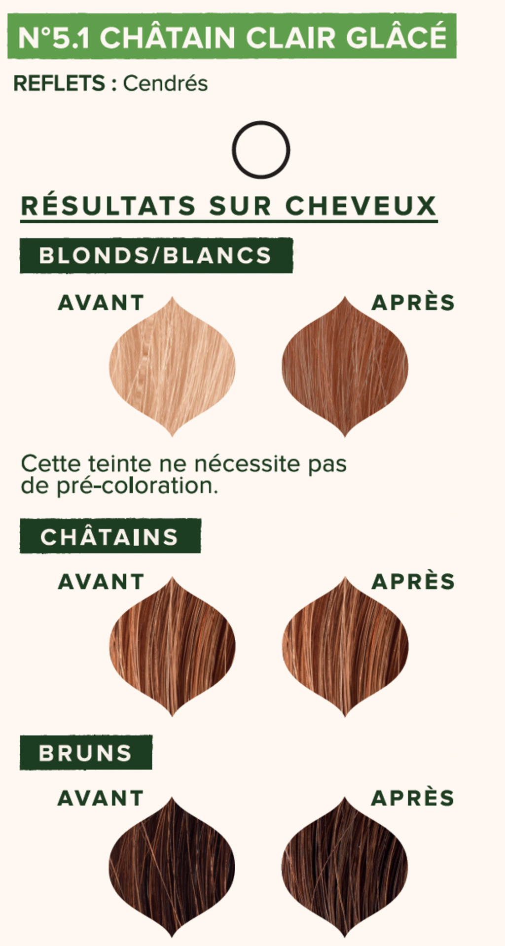 Med nyansen 5.1 blir blondt og lysebrunt hår tilført askeblonde refleksjoner. Den nøye sammensatte urteblandingen er rik på Amla.