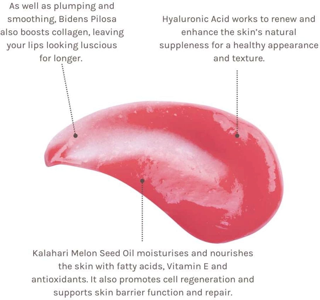 Dette pleiende oljeserumet gir leppene rikelig med fuktighet og gjør dem fyldigere fra innsiden. Formulert med Bio-Retinol fra Bidentis pilosa og nærende olje fra Kalahari-melonen for optimal pleie av den delikate leppehuden, samt støtte av dens beskyttelsesbarriere. Det oljeløselige hyaluronsyretilskuddet gir plumpende og fuktighetsgivende egenskaper, mens aromene av mynte og sitron gir det lille ekstra av friskhet.