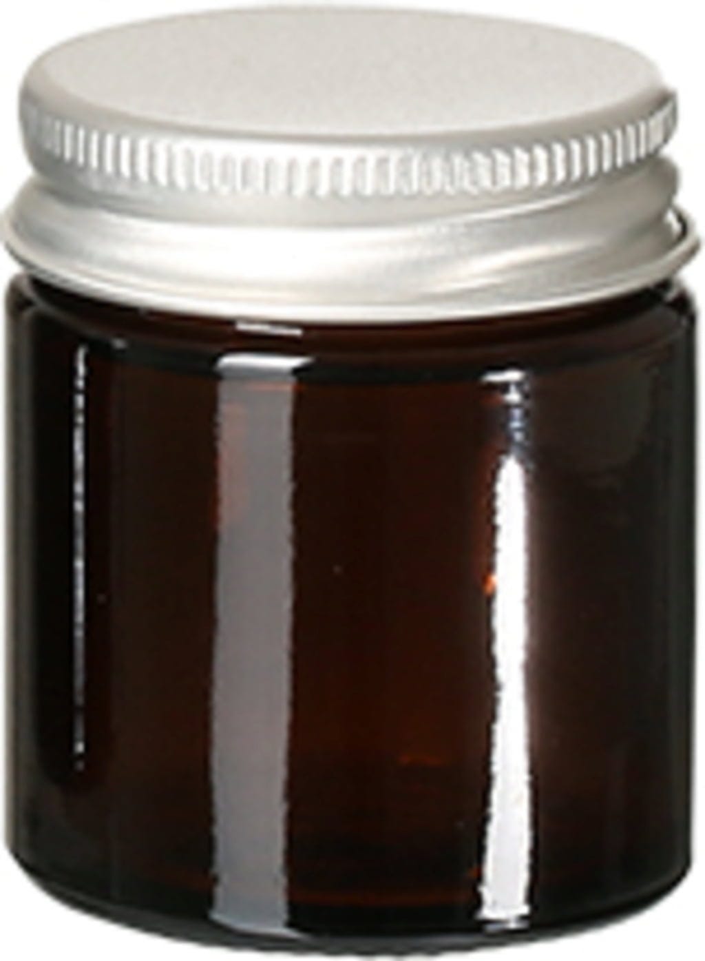 Glasskrukkene i brunt glass er tilgjengelige i forskjellige størrelser og kommer med tilhørende skrulokk i aluminium. De er perfekte for oppbevaring av hjemmelaget kosmetikk.