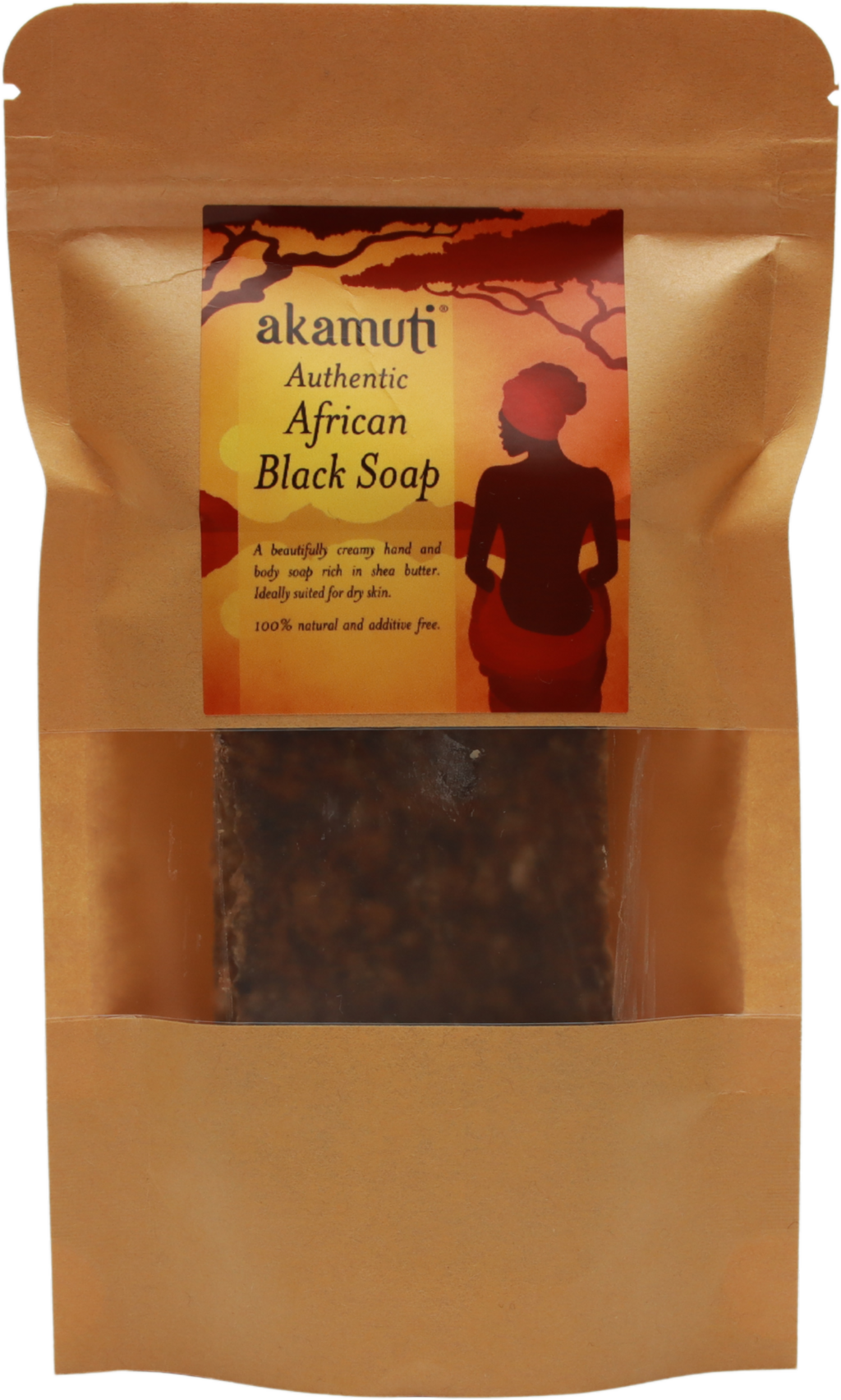 Den afrikanske svartsåpen fra Akamuti har en svært mild duft og danner et vidunderlig kremet skum som gir fuktighet og mykhet til huden. Denne såpen er en av de sunneste såpene, ikke minst på grunn av ingrediensenes renhet og enkelhet. Huden blir myk og jevn, og produktet egner seg også utmerket som ansiktssåpe, spesielt for tørr eller problemhud. Som kroppssåpe er den ypperlig egnet for alle hudtyper.