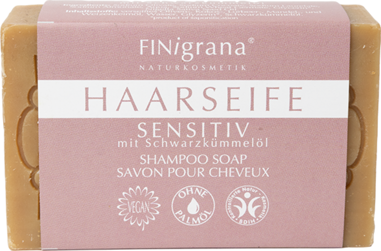 FINigrana Hårsåpe Sensitiv med svartfrøolje tilbyr spesielt skånsom pleie for sensitiv hodebunn. Takket være milde ingredienser egner den seg utmerket for alle hårtyper – spesielt for fint hår og personer med allergier. Oppskriften står for naturlig renhet uten kunstige tilsetninger. Svartfrøolje er rik på umettede fettsyrer, gir såpen positive egenskaper og sørger for en skånsom rengjøring. Hårsåpen er allsidig – ikke bare for hårpleie, men også ideell til barbering og skjeggpleie.