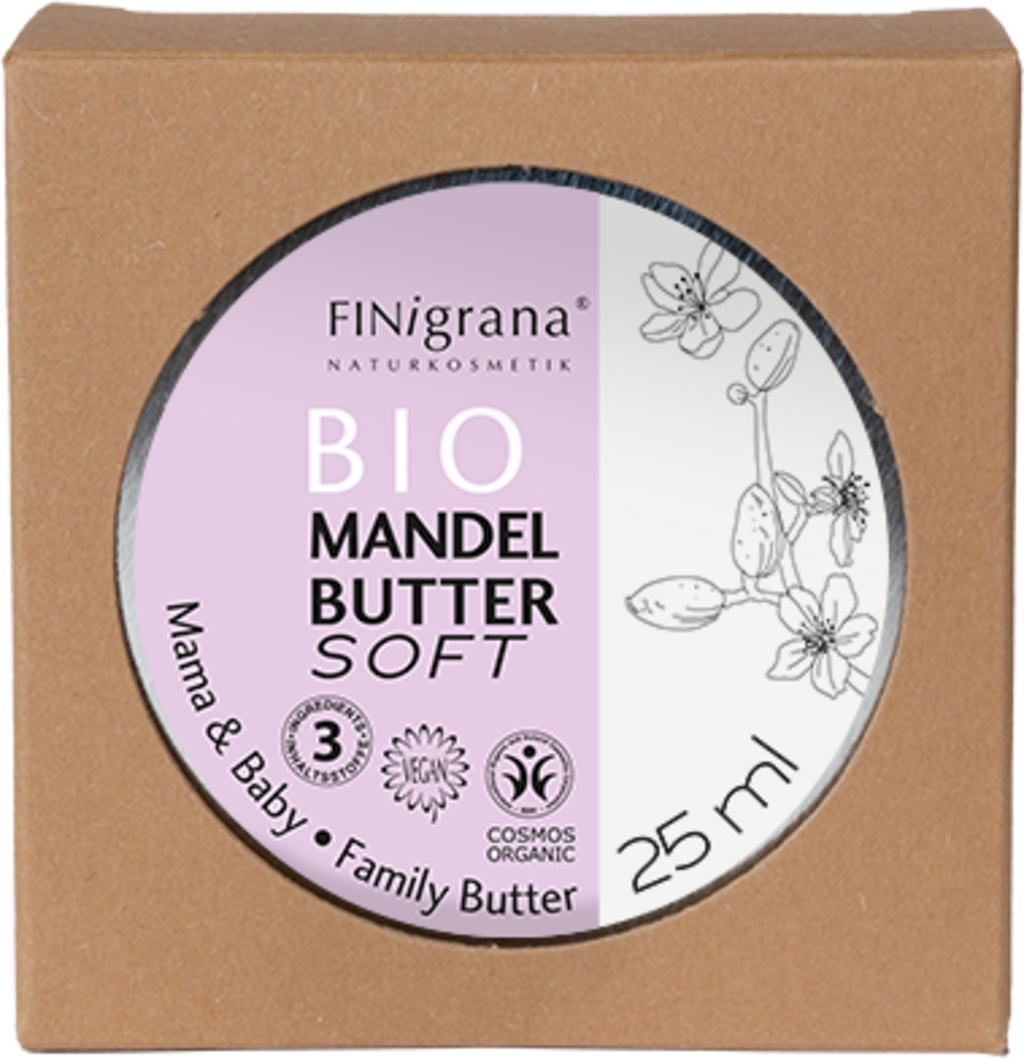 Almond Butter Soft kombinerer fordelene med tre verdifulle planteoljer: mild mandelolje, beskyttende sheasmør og fuktighetsbindende jojobaolje, og skaper et velværeprodukt for hele familien. Det kan brukes på sensitiv baby- og barnehud, samt på stram og tørr hud under og etter graviditet. Smøret gir intensiv pleie, fukter og mykgjør huden.