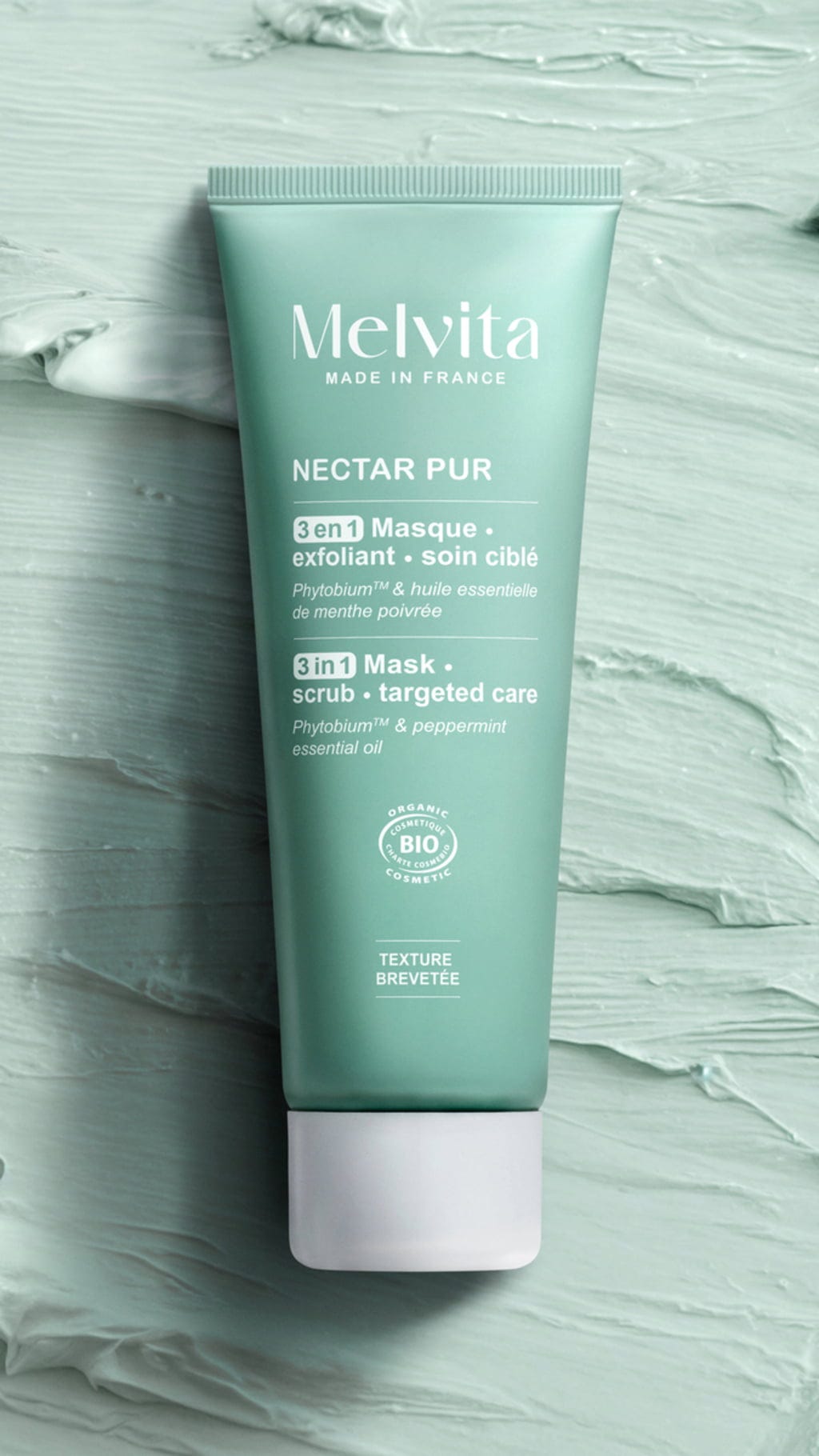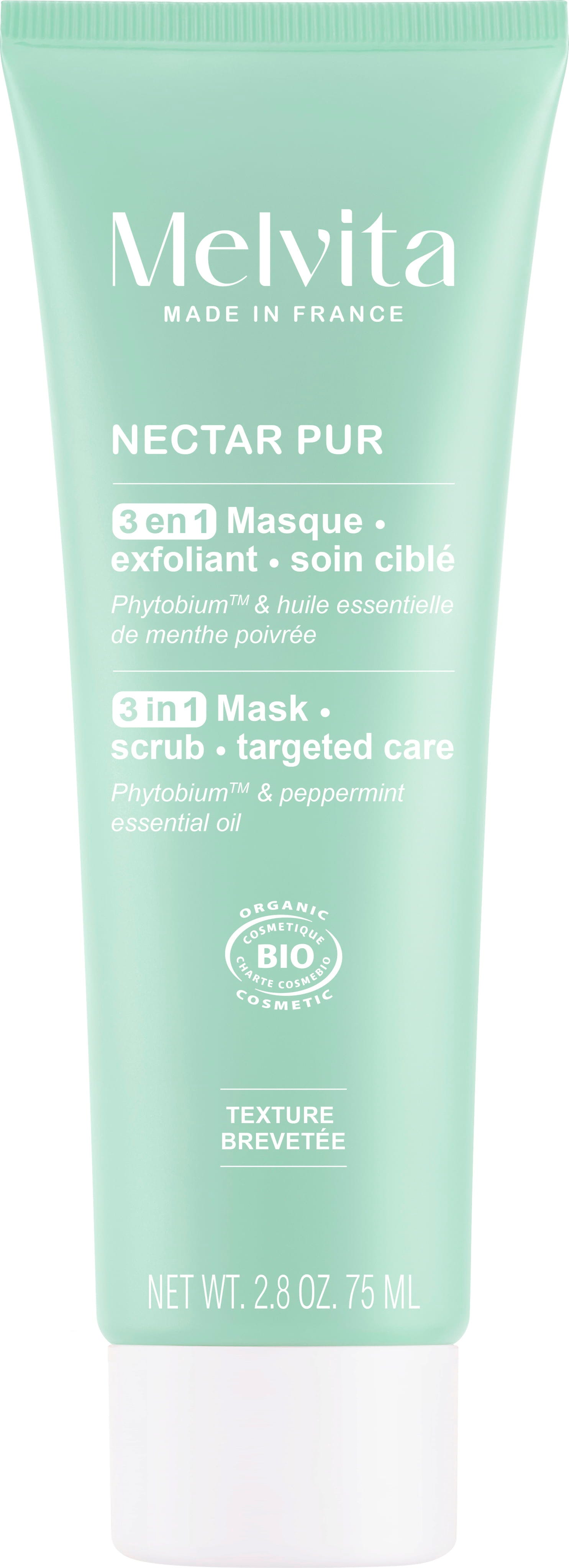 Melvita 3in1 Maske, Skrubb & Målrettet pleie, 75 ml