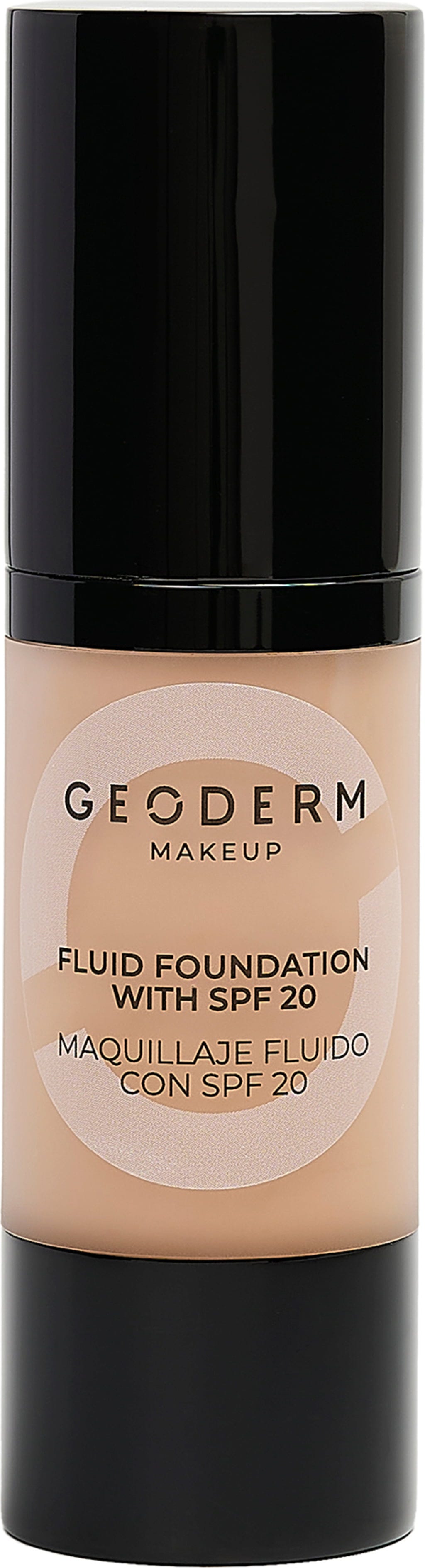 Fluid Foundation med SPF 20 fra Geoderm forbedrer hudens struktur, utjevner hudtonen og får porene til å virke mindre. Den 100% naturlige formelen med mineralske pigmenter tilpasser seg hudtonen og gir en myk, naturlig finish. Pleieingredienser og en mellomsterk solbeskyttelsesfaktor beskytter mot solstråling, mens den veganske formelen regulerer glans uten å tørke ut huden – perfekt for fet kombinasjonshud.
