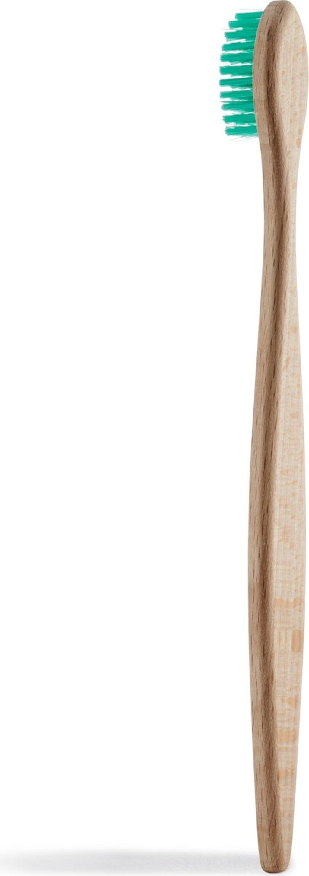 Det 100% biologisk nedbrytbare håndtaket av bøk har en naturlig sklisikker overflate. De hvite bustene består av BPA-fri nylon og rengjør tennene på en skånsom måte.