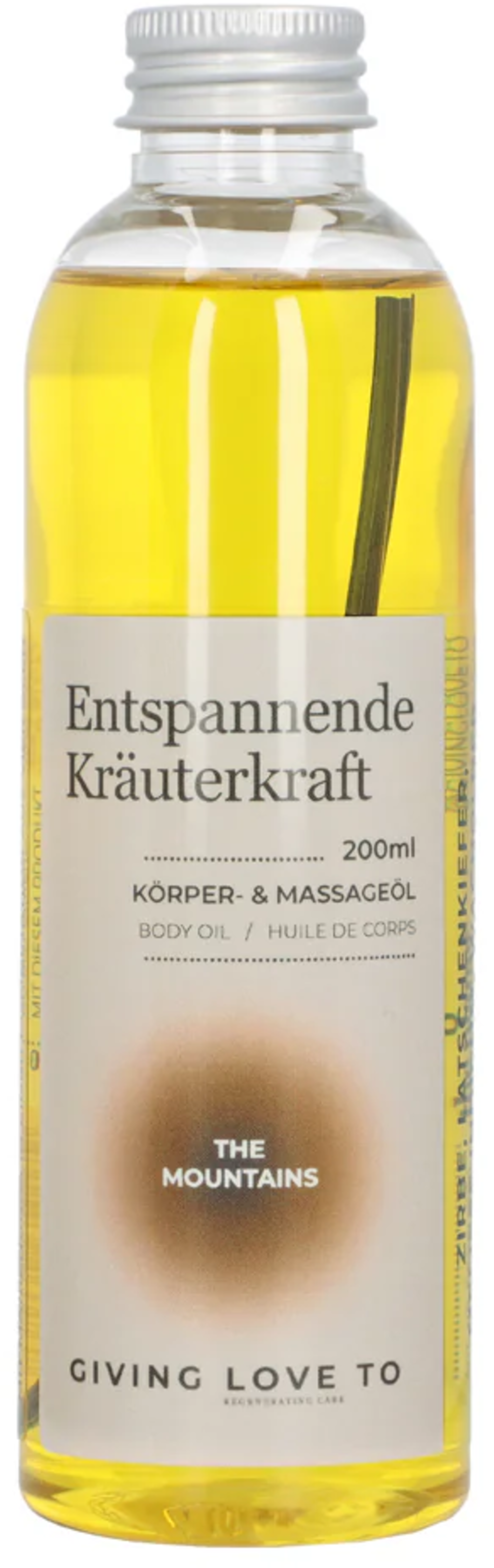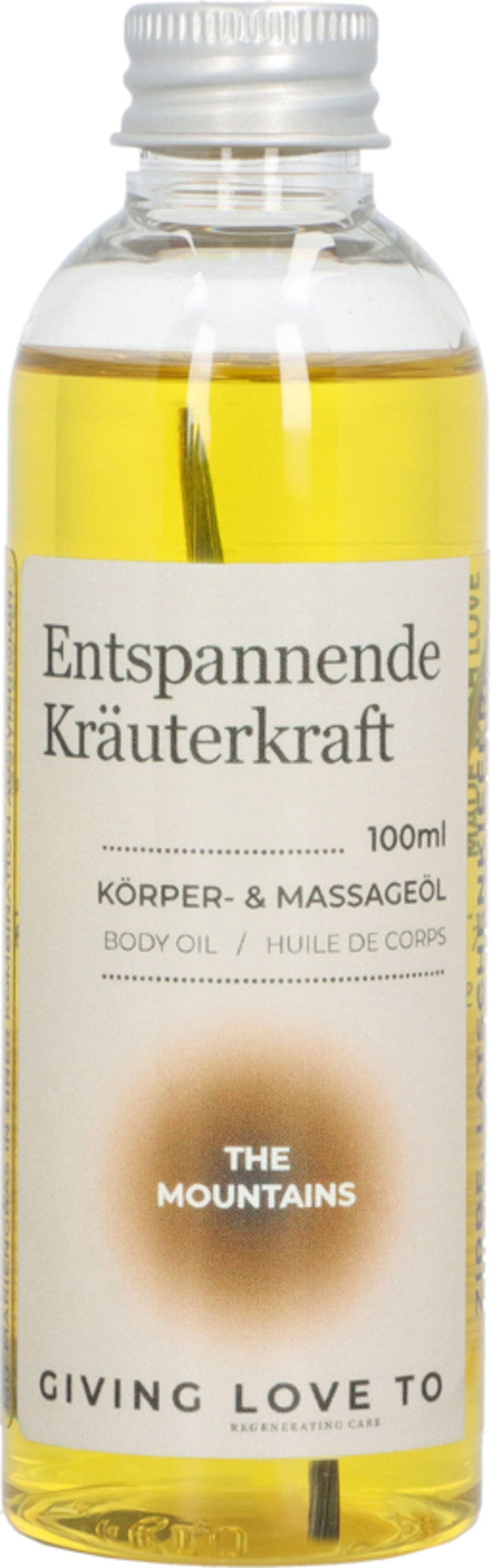 GIVING LOVE TO Kropps- og massasjeolje 'Beroligende urteenergi' - The Mountains, 100 ml