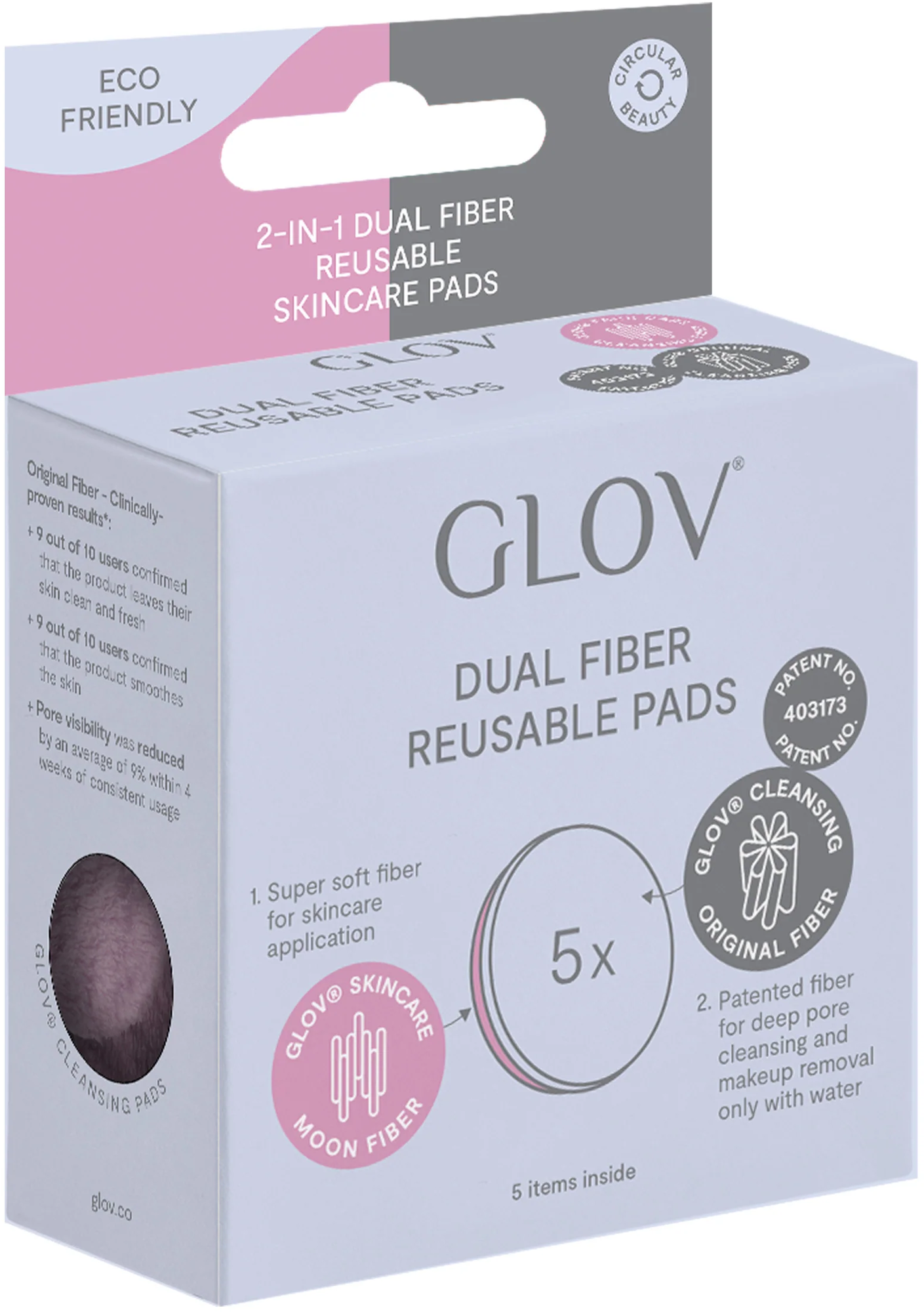 GLOV 2-i-1 Dual Fiber gjenbrukbare hudpleieputer, Pink (5 Stk)