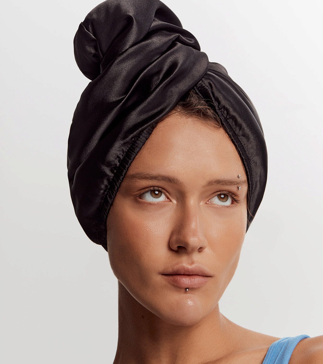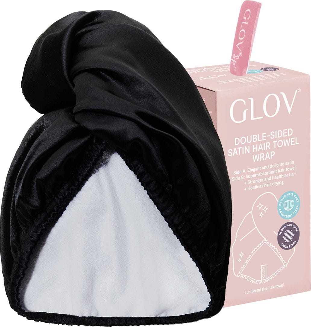 Den vendbare turbanen kan brukes på begge sider. Det superabsorberende GLOV®-mikrofibermaterialet absorberer fuktighet etter hårvask, mens den satengbelagte siden ser fantastisk ut. Når den glatte satin-siden er innvendig, beskytter den håret mot brudd, krus og floker. Hair Wrap er ideell for krøllete hår eller for de som vil gå ut med vått hår - perfekt som et elegant tilbehør.
