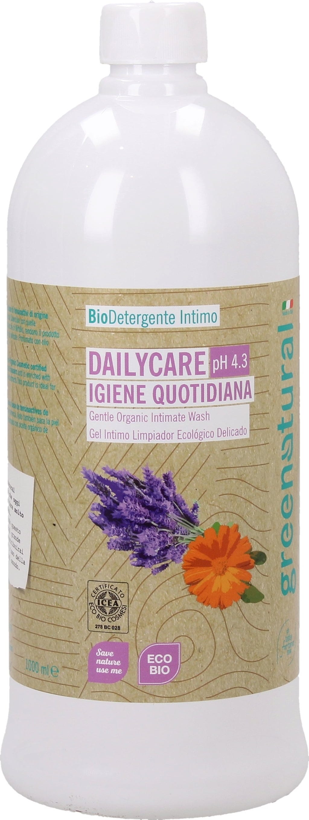 greenatural Skånsom intimsåpe med calendula, lavendel og blåbær, 1000 ml (1 l)