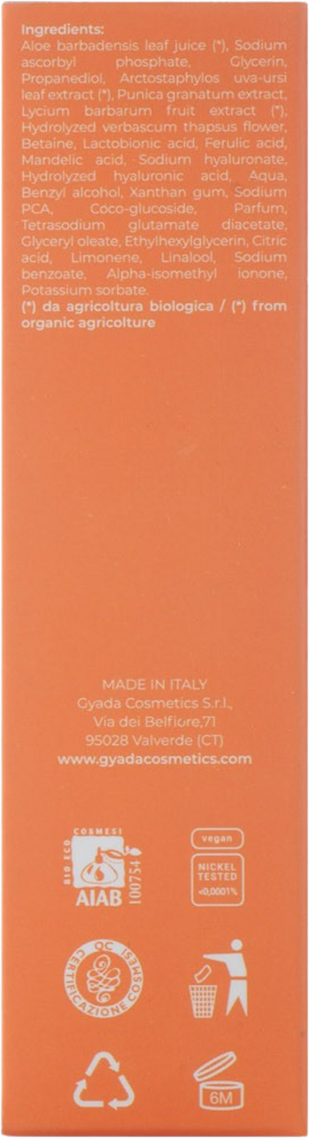 Produsent: GYADA COSMETICS S.R.L., Via Dei Belfiore 71, 95028, Valverde (CT), Italia, info@gyadacosmetics.com, www.gyadacosmetics.com