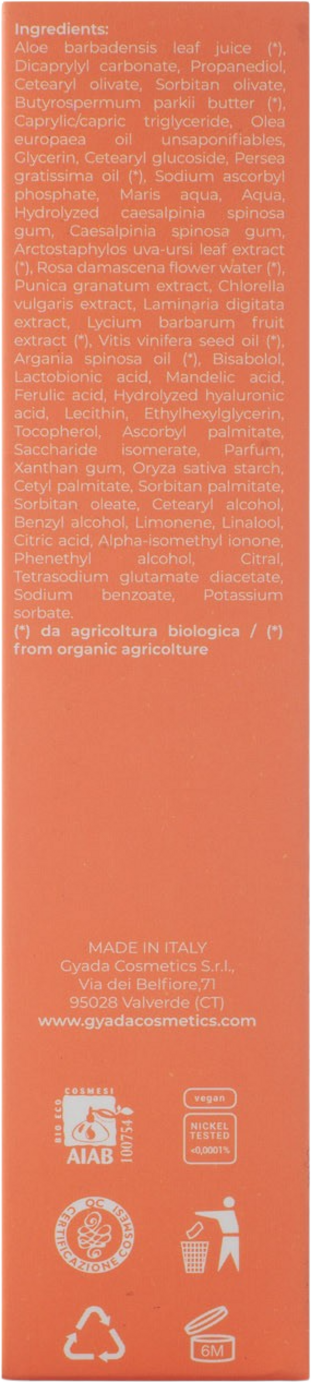 Produsent: GYADA COSMETICS S.R.L., Via Dei Belfiore 71, 95028, Valverde (CT), Italia, info@gyadacosmetics.com, www.gyadacosmetics.com