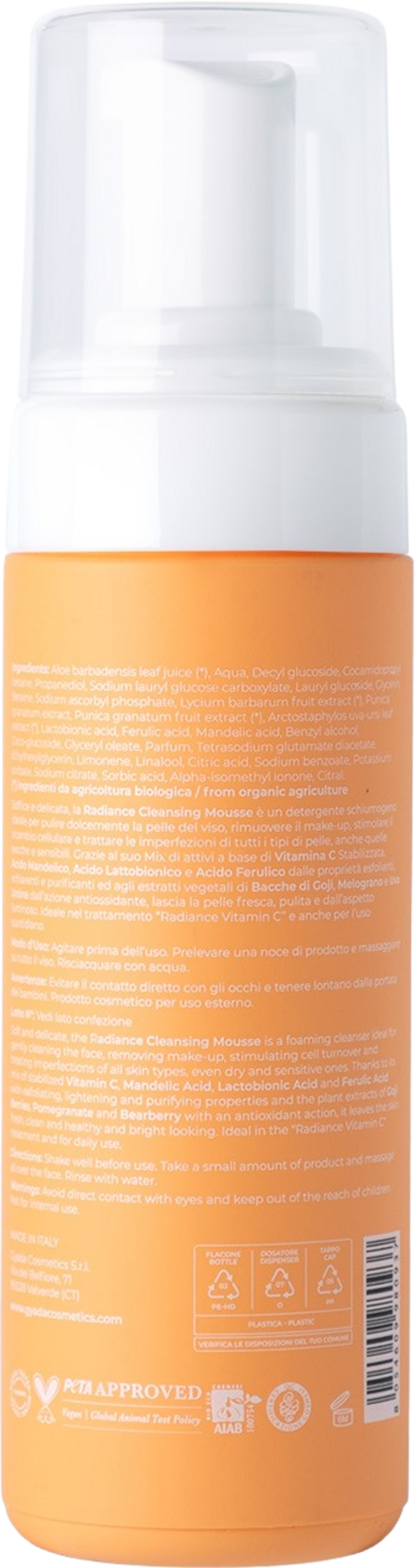Denne myke rensemoussen renser ansiktet skånsomt, fjerner makeup og hjelper mot urenheter. Takket være sin milde formel er den også egnet for tørr og sensitiv hud. Blandingen av aktive ingredienser basert på stabilisert vitamin C, beskytter, i synergi med nøye utvalgte planteekstrakter fra gojibær, granateple og bjørnebær, huden og gir den en strålende glød.