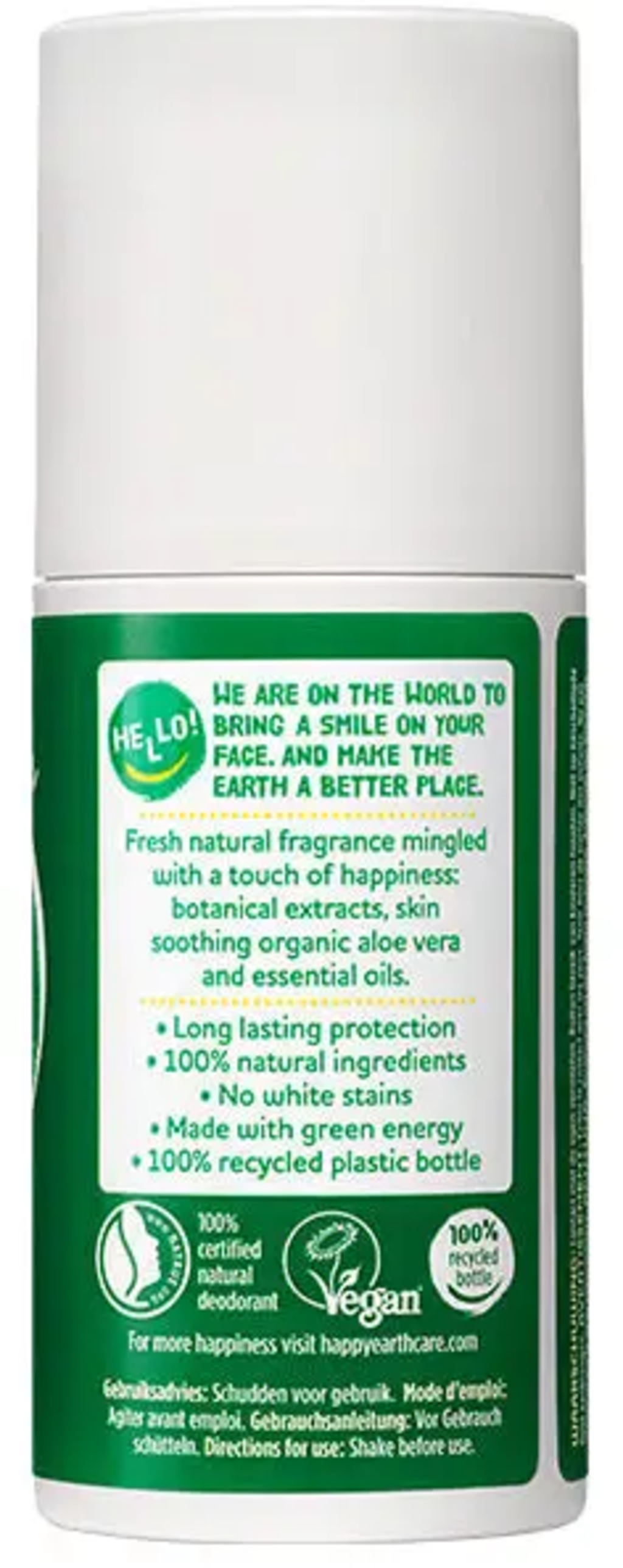 Happy Earth Pure Deo Roll-On, Bergamot Cedarwood (75 ml)