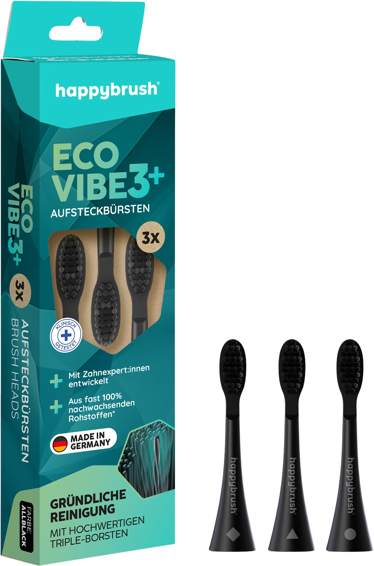 happybrush Eco VIBE 3+ AllBlack-børstehoder, 3 Stk