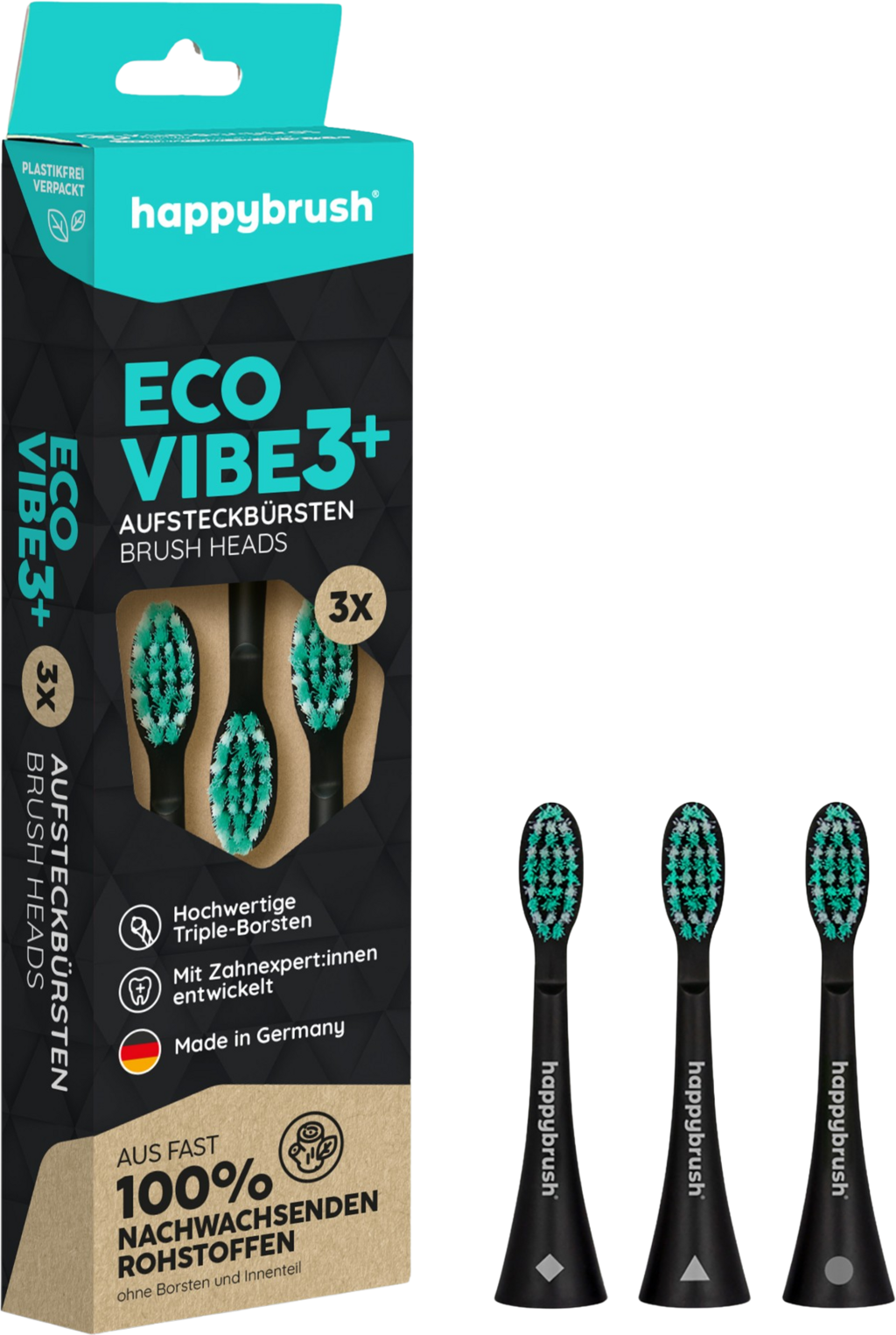 happybrush ECO VIBE 3+ Børstehoder Sort-Mint
