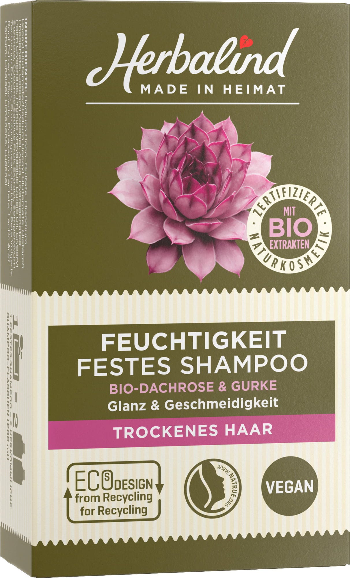 Dette faste sjampokost med flere intensivt fuktighetsgivende komponenter beskytter håret mot tørrhet og gir glans tilbake. Økologisk takløk, også kjent som 'Alpenes Aloe Vera', kombinert med agurkekstrakter og fruktsukker fra rødbeter justerer optimalt hårfuktigheten og gir ekstra pleie. Sjampoen gir håret silkemykhet og lettere børsting og styling.