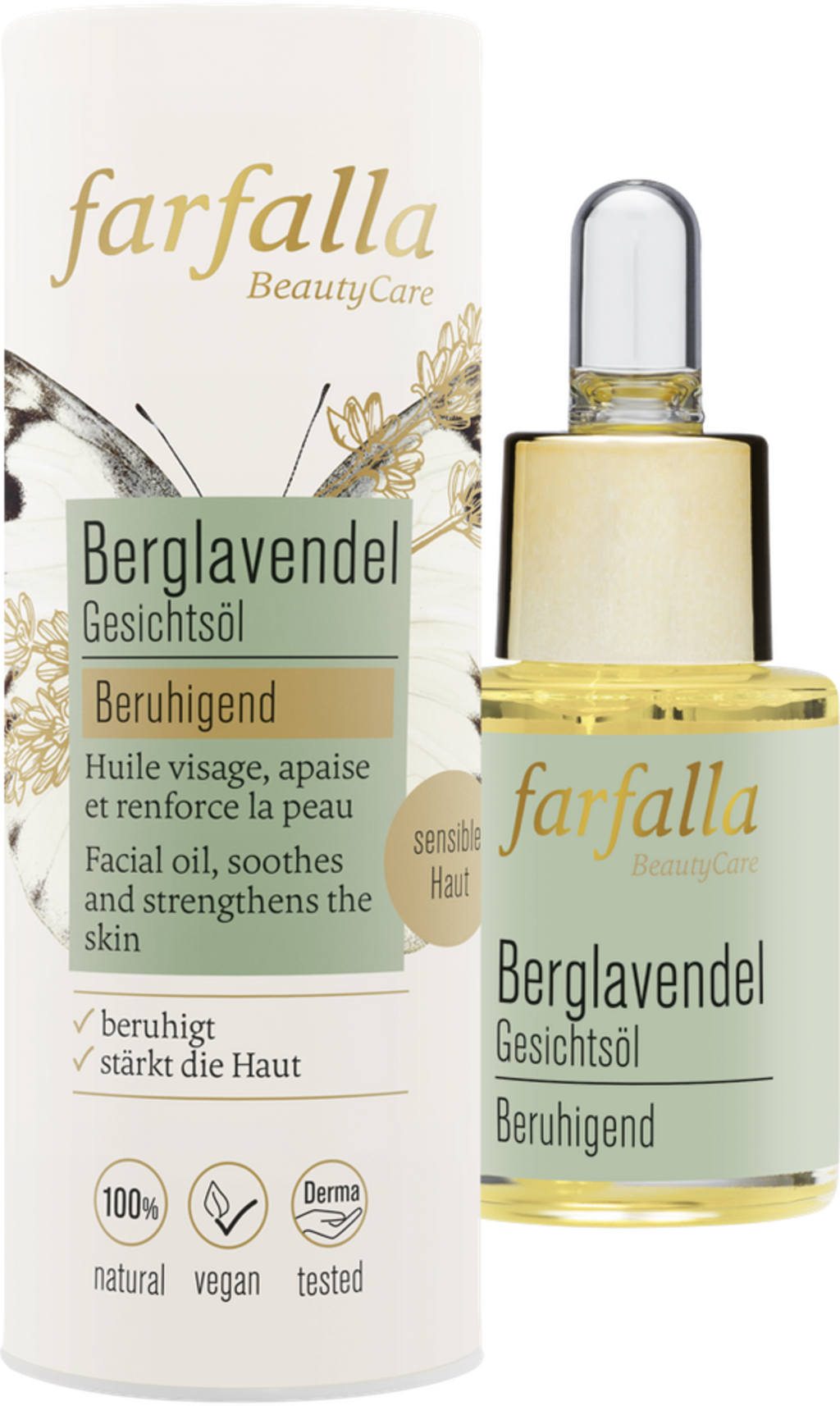 Med denne ansiktsoljen med fjell-lavendel får sensitiv hud tilstrekkelig fuktighet fra økologisk agurkfrøolje samt aprikoskjerneolje. I tillegg styrkes hudbarrieren på en naturlig måte.