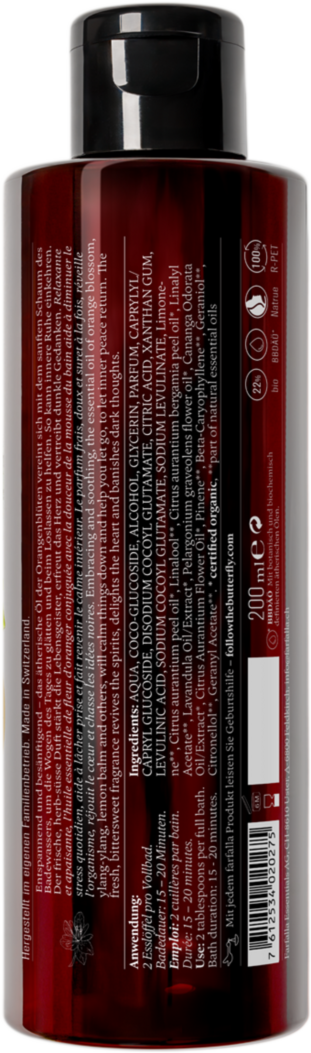 | Produsent: | Farfalla Essentials AG, Florastrasse 18b, 8610, Uster, Sveits, info@farfalla.ch |