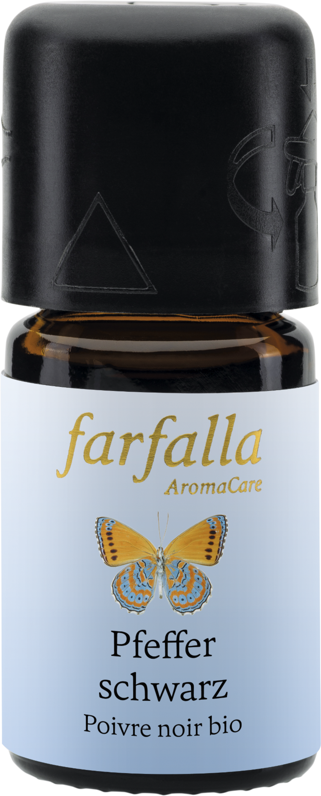 Pepper har sin opprinnelse i Sørvest-India, denne økologiske kvaliteten er fra Madagaskar. Duften er varm og krydret. Den sterkt stimulerende og aktiverende eteriske oljen passer spesielt godt som tilsetning for varmende massasjer for idrettsutøvere og dansere. Trøstende, beskyttende og gir en følelse av trygghet. Pepper er en typisk essens for den kalde vinter- og juletiden.