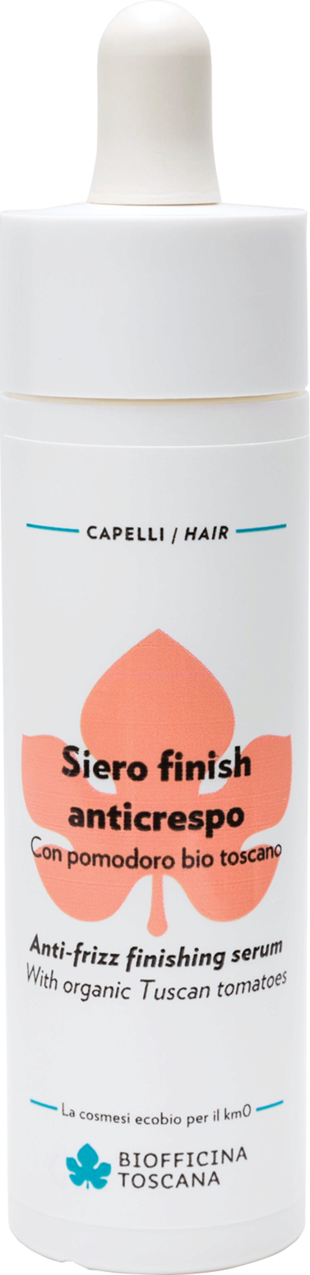Anti-Frizz Finish Serum er den ideelle partneren mot statisk og krusete hår. Takket være sine aktive ingredienser og milde egenskaper, etterlater det håret mykt og velduftende uten å tynge det. I tillegg gir tilstedeværelsen av en innovativ aktiv ingrediens fra toskanske økologiske tomater produktet beskyttende egenskaper mot forurensning.
