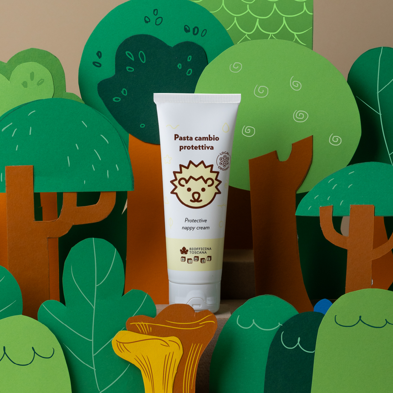 Pleiekremen er spesielt utviklet for det sensitive bleieområdet. Den inneholder sinkoksid, toskansk olivenolje og havre som beskytter og gir optimal pleie til huden.