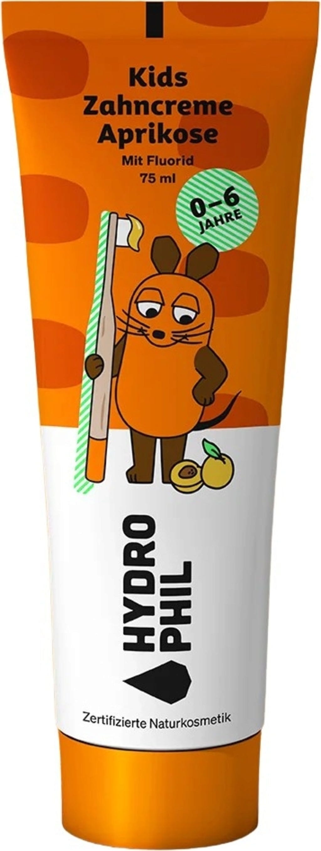 Å pusse tenner med musen? Den fruktige tannkremen fra Hydrophil med aprikossmak vil overbevise selv de minste, og bidrar til sunne og sterke tenner. Formuleringen er utviklet spesielt for barn, inneholder fluor og beskytter mot karies. Tenner rengjøres skånsomt uten å skade den fortsatt svært sensitive emaljen.