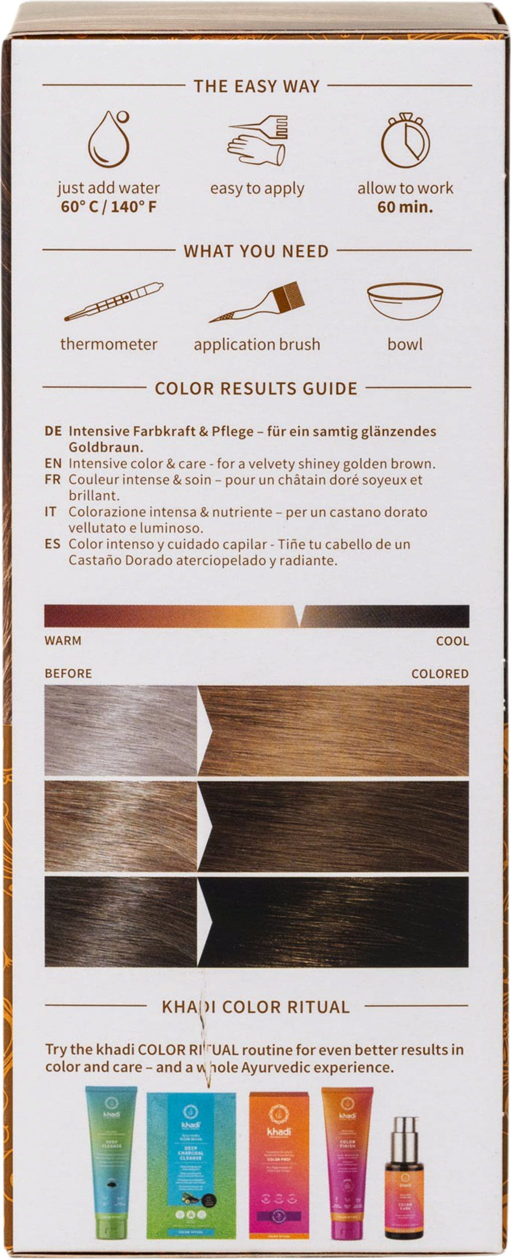 Nyansen gyllenbrun kan også kombineres med andre khadi plantebaserte hårfarger. Bland med: