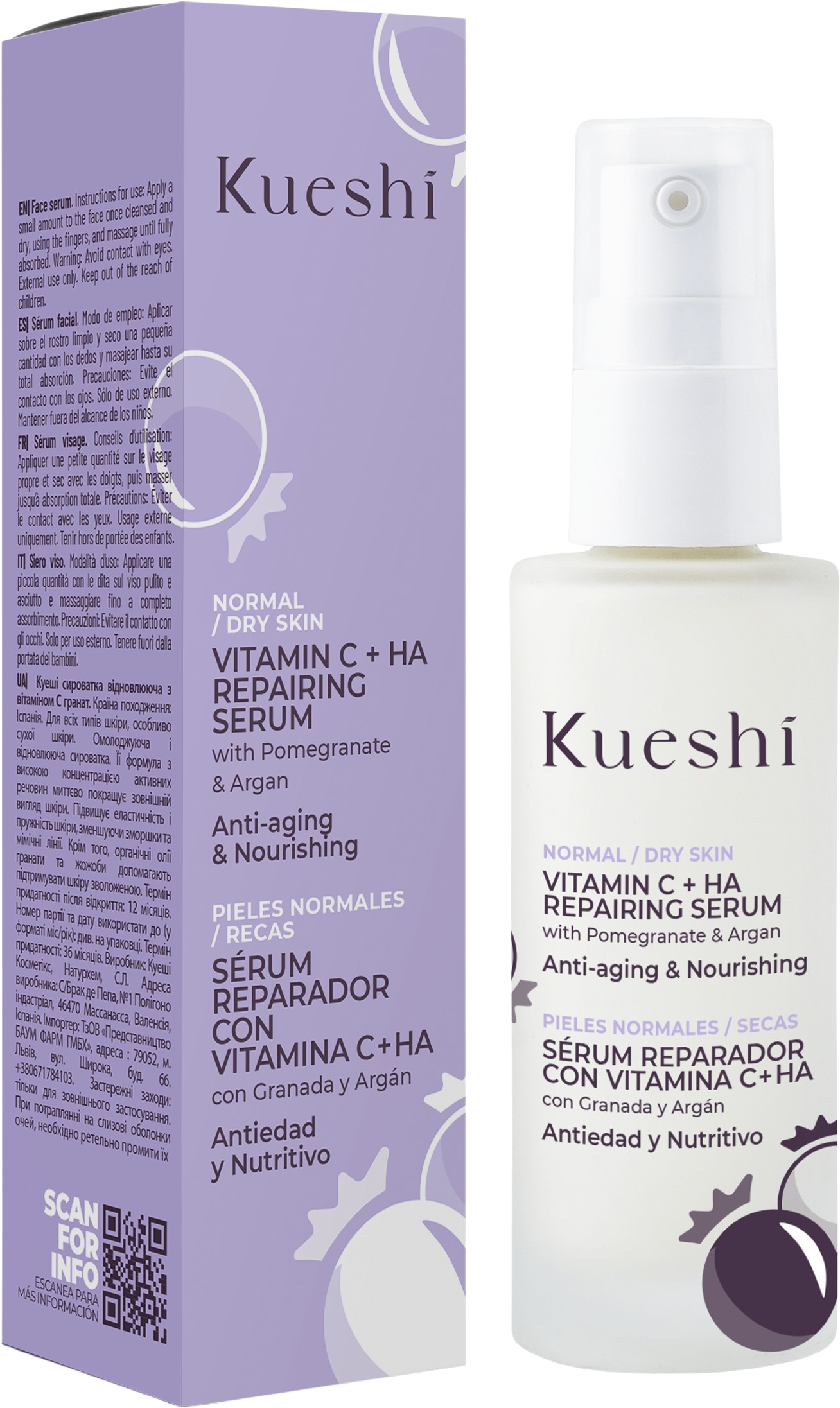 Det nærende Repairing Serum fra KUESHI holder huden myk og smidig, takket være en verdifull blanding av oliven-, granateple-, jojoba- og arganolje. Hyaluronsyre og aloe vera gir ansiktet fuktighet og har en utjevnende effekt.