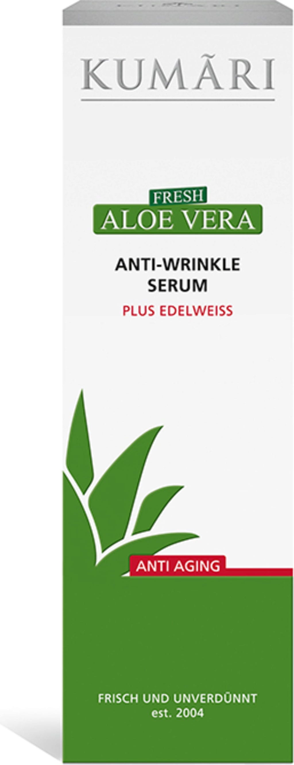 Dette serumet, basert på 85% Aloe Vera-saft, motvirker aldringstegn og gir en betydelig fastere hud. Edelweiss og Gatuline gir de naturlige anti-aging egenskapene og beskytter samtidig mot frie radikaler. Gatuline glatter ikke bare ut eksisterende rynker, men forhindrer også dannelsen av nye. Naturlig gir den også omfattende fuktighet.