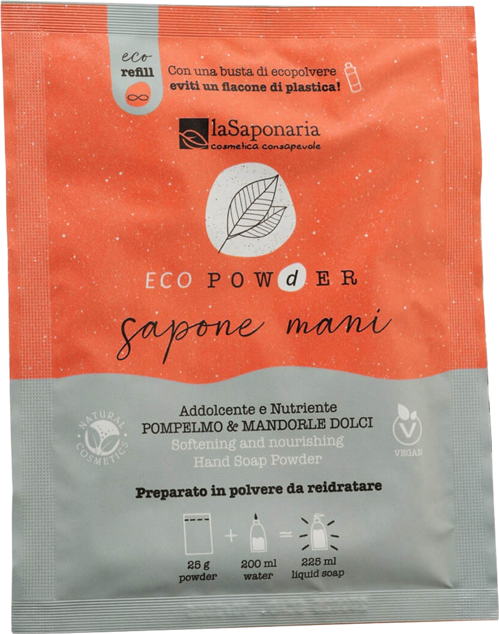 La Saponaria EcoPowder Refill Håndsåpe Grapefruit og Søtmandel, 25 g