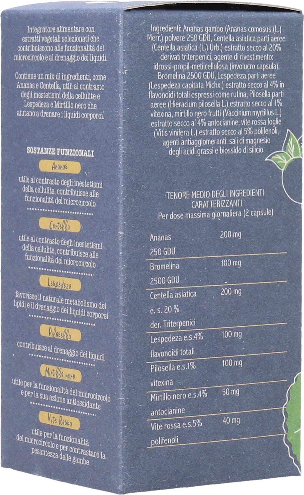 Ananaspulver, Wassernabel, Überzugsmittel (Kapselhülle (hydroksypropylmetylcellulose)), Bromelain, Lespedeza, Habichtskraut, Heidelbeer, vindrue (Vitis vinifera), Trennmittel (Magnesiumsalze von Speisefettsäuren, Magnesiumsalze von Siliziumdioxid)
