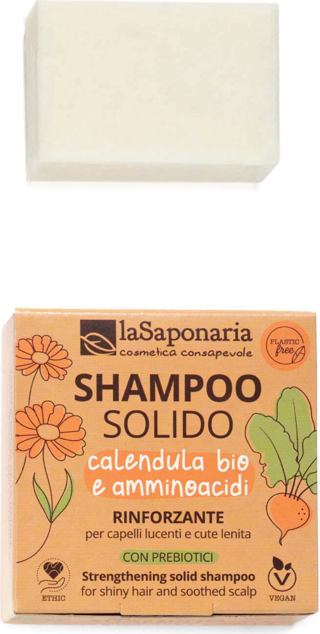 Dette faste sjampoet har beroligende egenskaper og er spesielt skånsomt i sin rengjørende effekt. Det inneholder styrkende aminosyrer fra rødbete og linolje samt prebiotika fra sikori, som gjenskaper den naturlige balansen i hodebunnen. I tillegg bidrar legestokkrose, ringblomst og trollhassel til mykhet og gir håret ny glans.