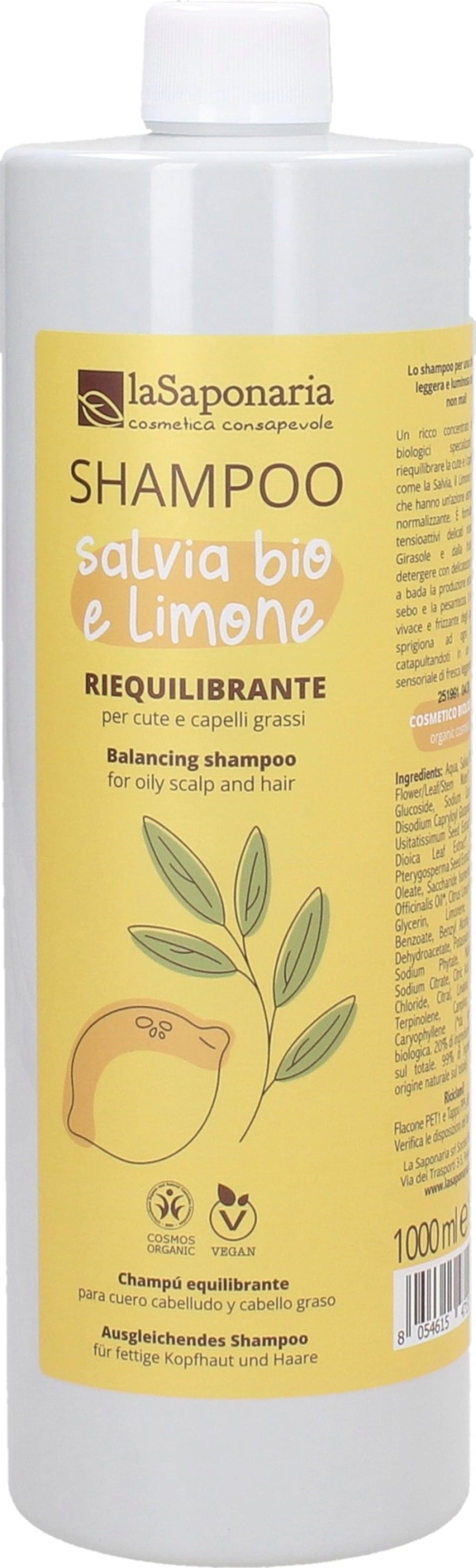 La Saponaria Shampoo med salvie og sitron, 1 l