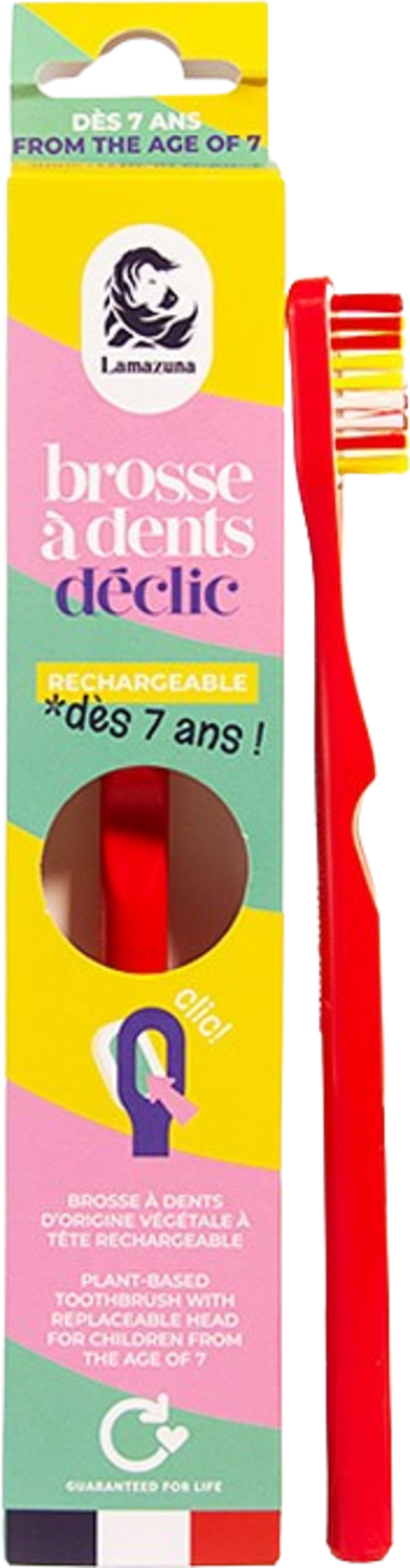 Med disse fargerike tannbørstene blir tannpussen morsom, og barn fra 7 år blir naturlig introdusert til avfallsreduksjon og bærekraft. Håndtaket er laget av plantebasert plast og kan gjenbrukes, mens børstehodet enkelt kan byttes ut når det har nådd slutten av sin levetid. Også nylonbørstene er biobaserte og ekstra myke for ikke å irritere barns tannkjøtt.