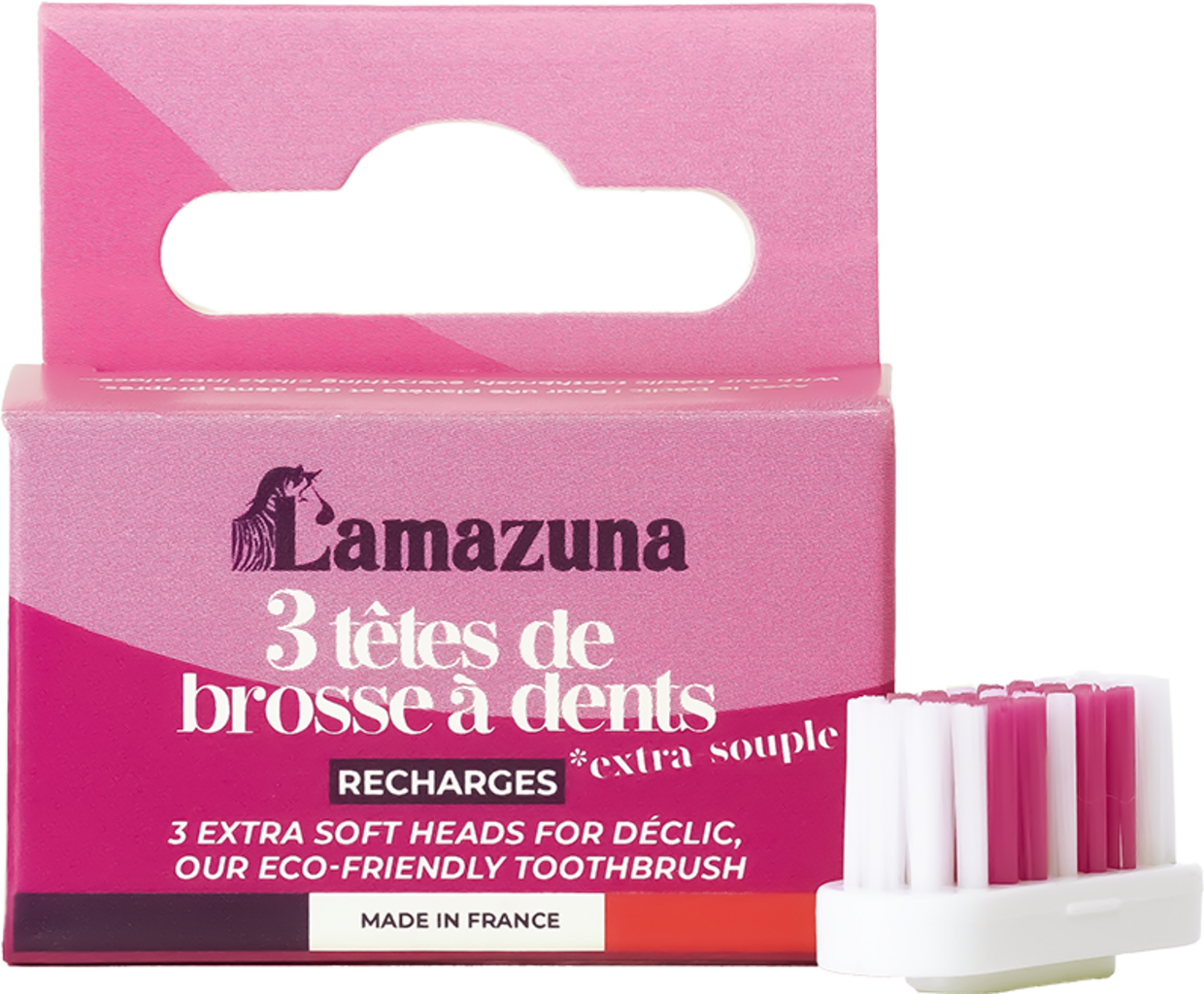 De ekstra-myke erstatningshodene passer til tannbørstene fra Lamazuna. Skifte av børstehode er svært enkelt. I tillegg reduserer du husholdningsavfallet ditt.