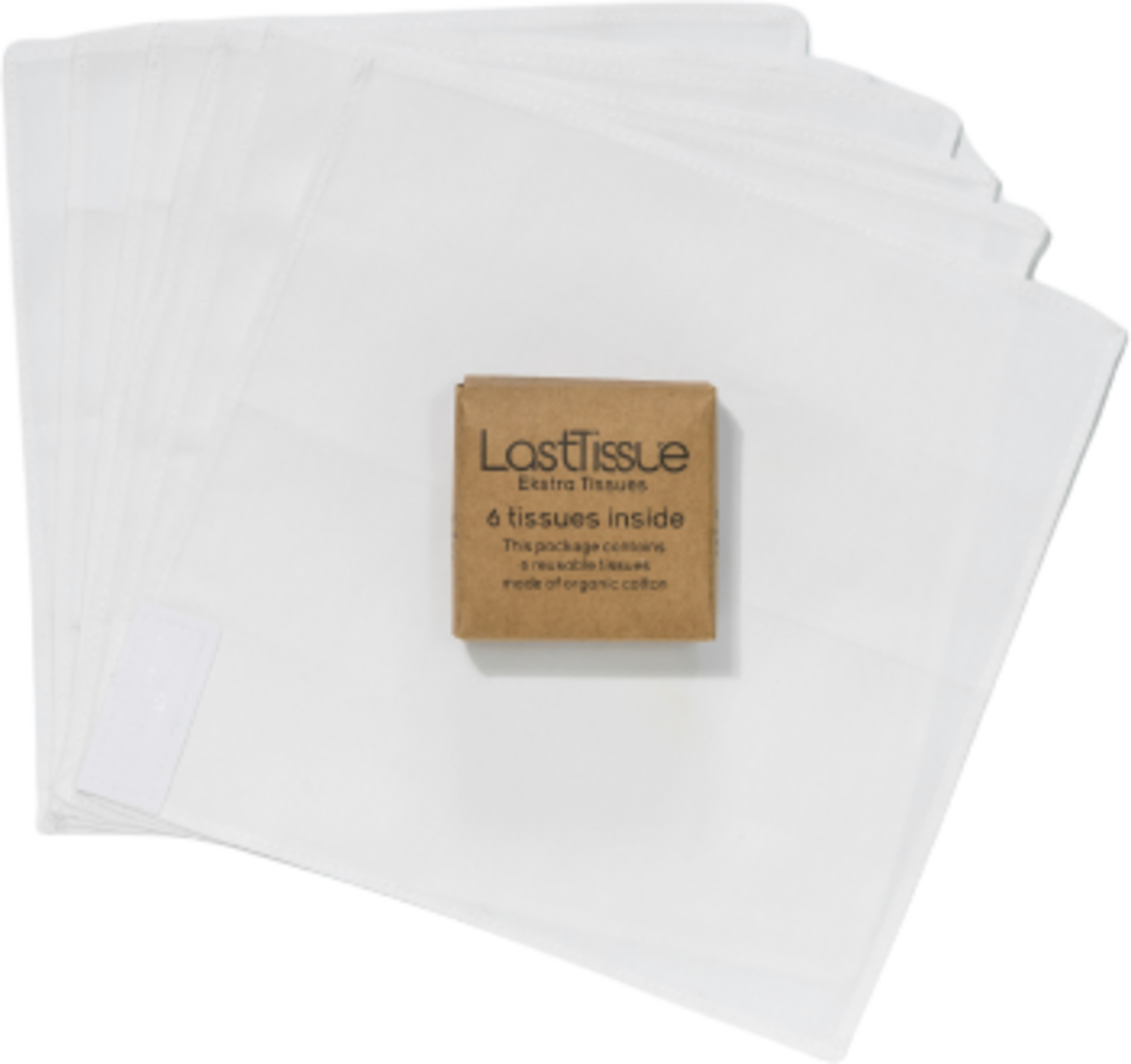 Når de gamle stoffer lommetørklene er utvasket, kan du fylle på med hele 6 nye stykker her. Laget av 100% økologisk bomull, er de ekstra myke og skånsomme mot nesen. Lommetørklene kan vaskes på 60°C og gjenbrukes opptil 520 ganger. Et klart tilfelle av ekte miljøhelter!