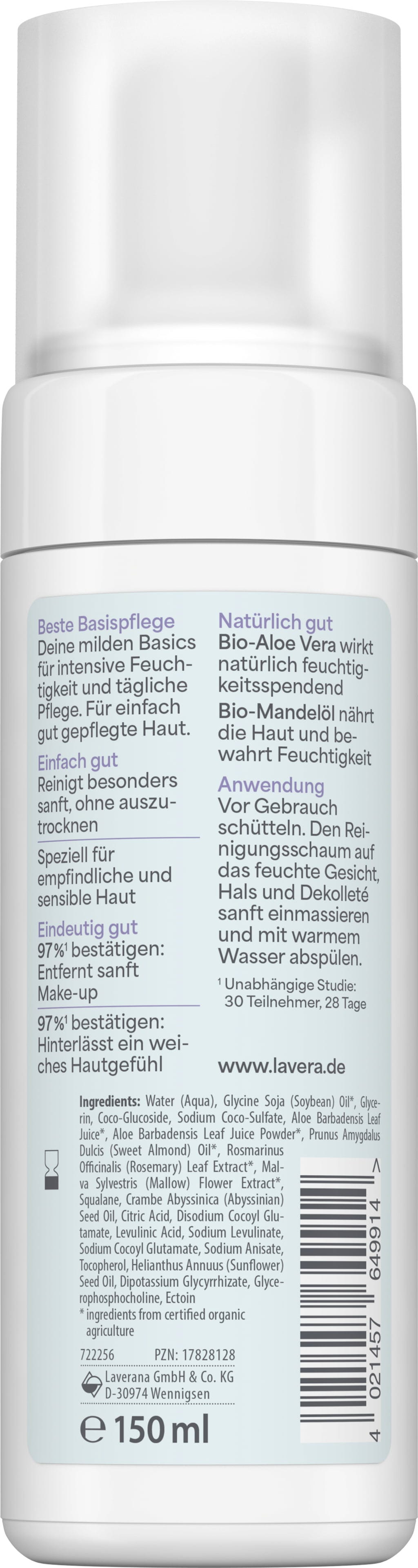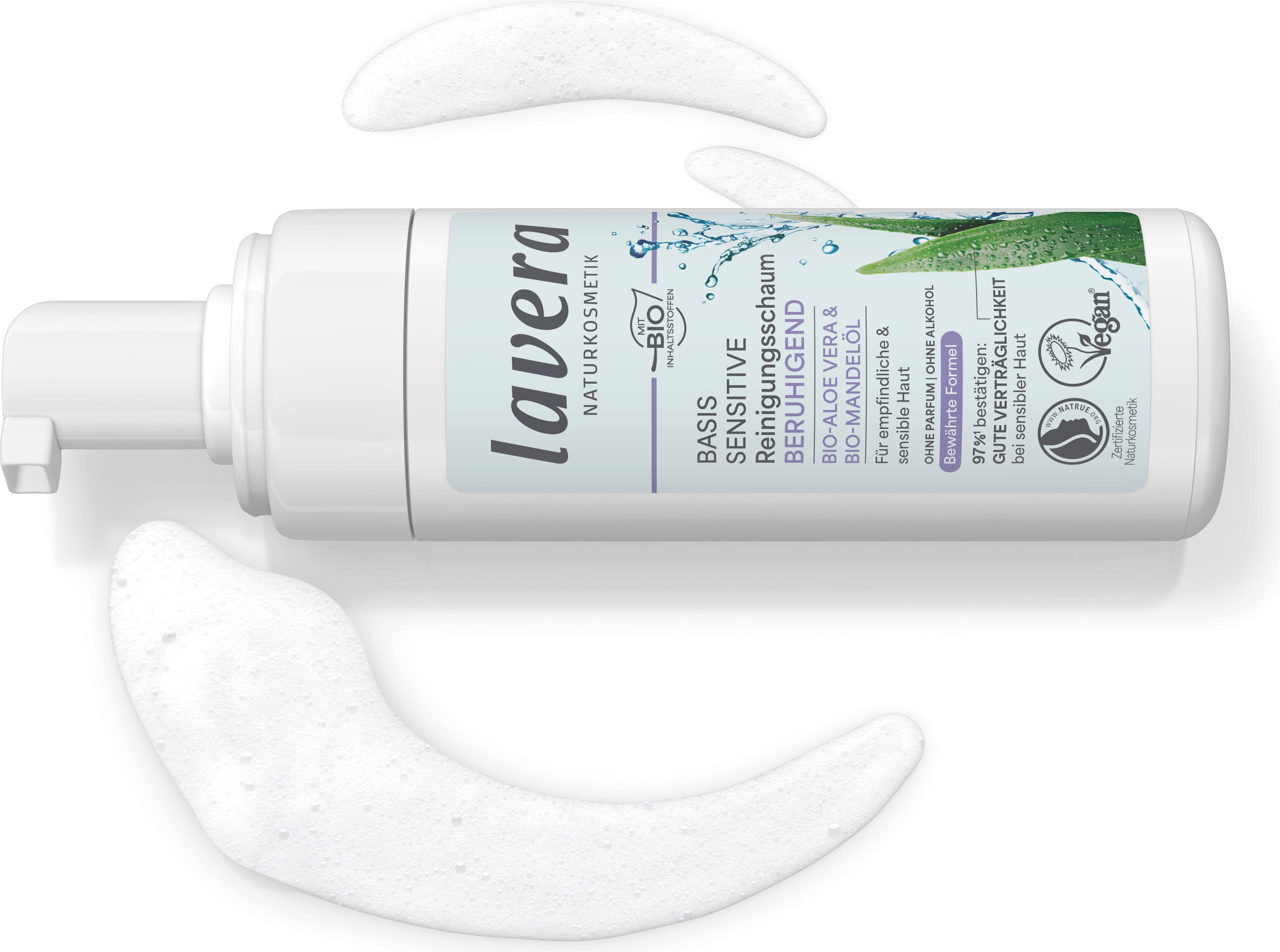 Renseskummet fra lavera pleier også sensitiv hud til å bli ren og frisk igjen. Økologisk aloe vera og økologisk mandelolje har regenererende og fuktighetsgivende egenskaper som skaper en ren hudfarge.