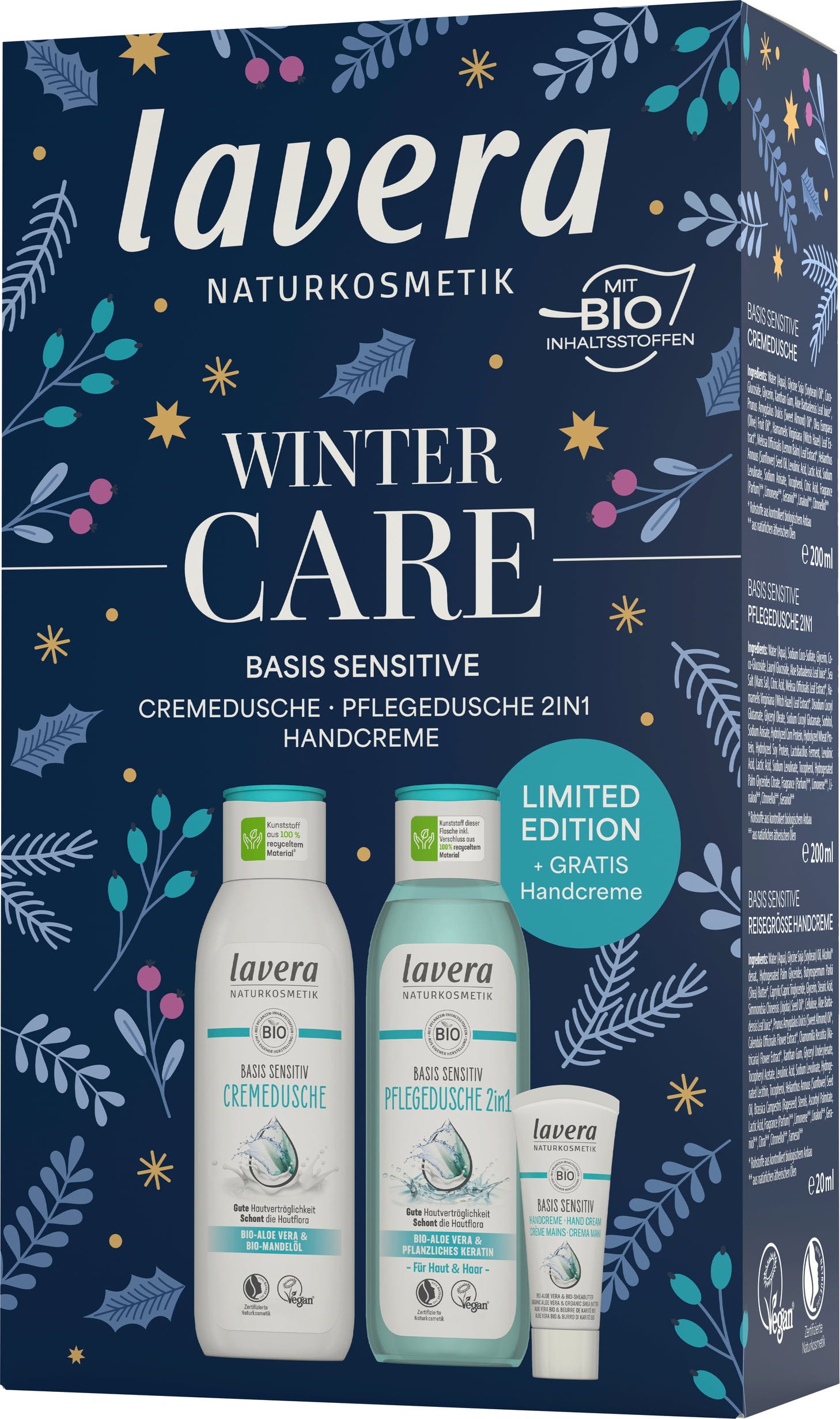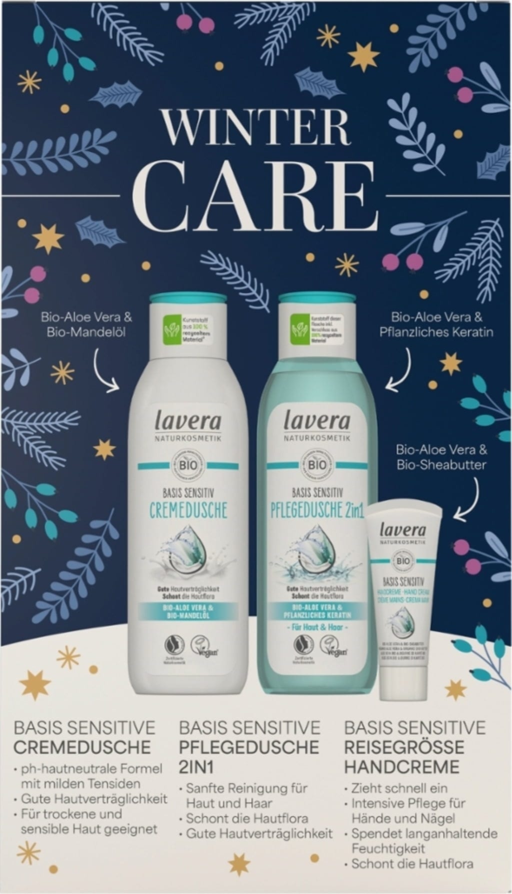 Gi bort den populære og skånsomme basispleien for sensitiv hud – stilig pakket i en elegant gaveeske! Vinterpleiesettet består av en kremdusjsåpe, en pleiende dusjsåpe og en liten håndkrem. For en glatt og velstelt hudfølelse om vinteren.
