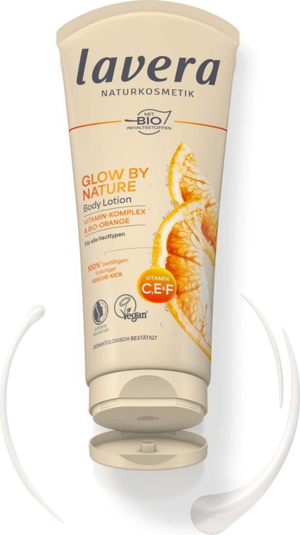 Den effektive og veltolererte formelen til denne bodylotionen, beriket med vitamin C, E og F, gir huden glød og en frisk følelse. Den gir også langvarig fuktighet og utglattende egenskaper, sammen med en solrik, frisk appelsinduft. Den behagelige teksturen absorberes raskt og er ikke fet.
