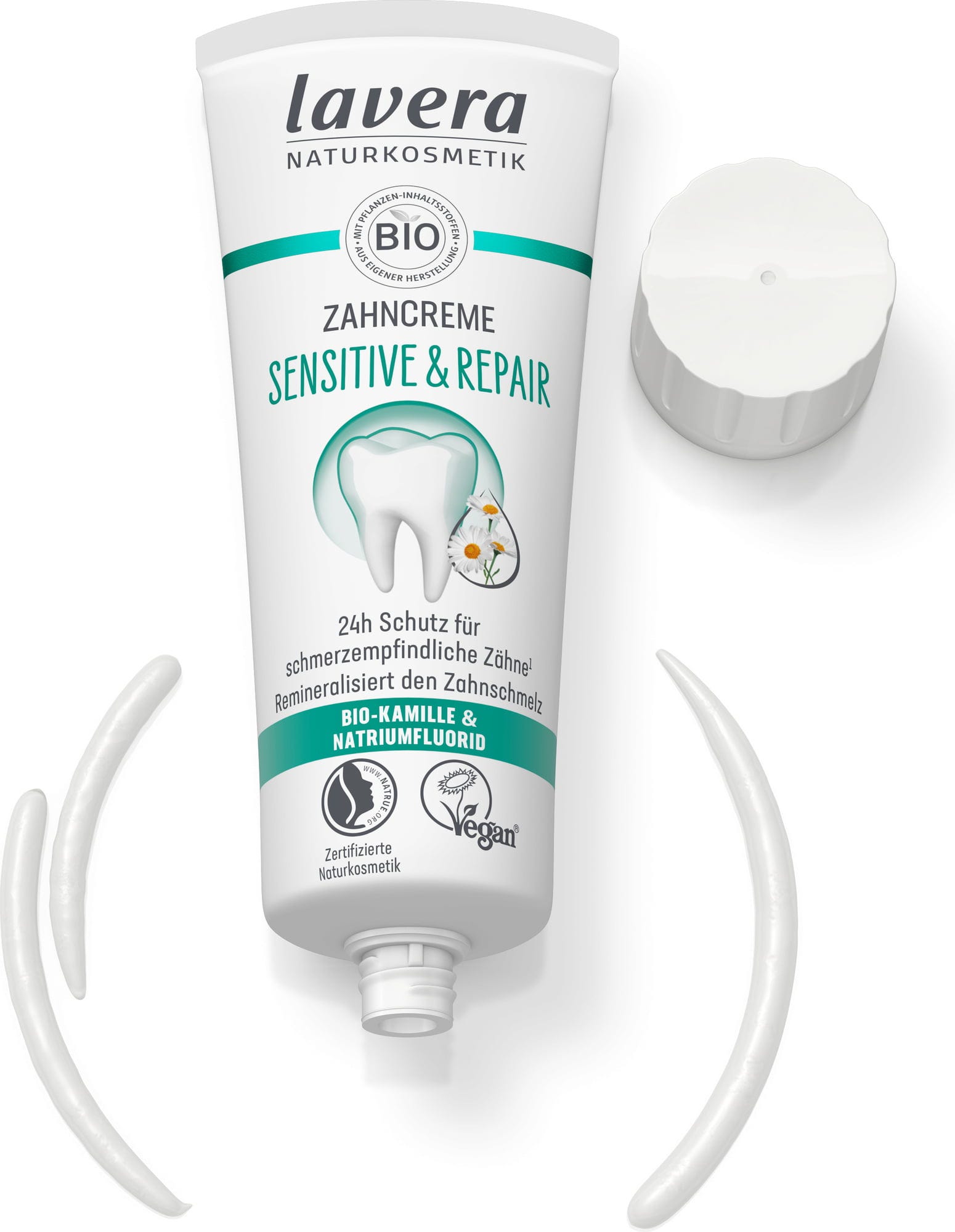 The Sensitive & Repair Tannkrem fra lavera er spesielt egnet for sensitive tenner og gir dem omsorg med en mild kompleks basert på økologisk kamille og natriumfluorid. I tillegg remineraliserer tannkremen tannkjøttet, fjerner plakk og gir omfattende beskyttelse mot hull. Nyt en ren og frisk følelse i munnen!