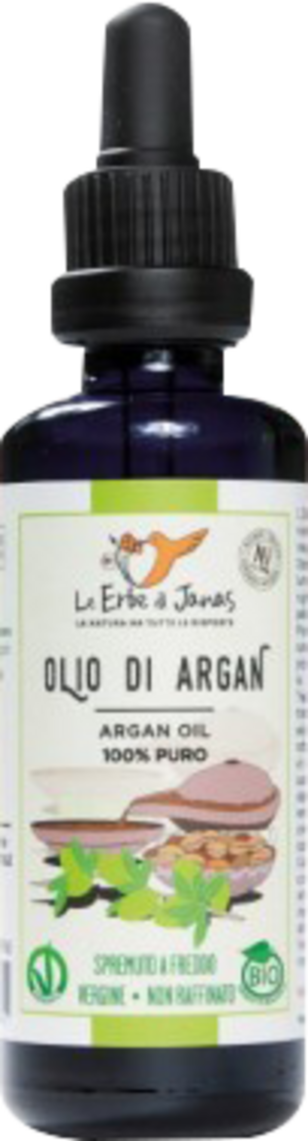 Arganoljen fra Le Erbe di Janas er et rent, kaldpresset naturprodukt, rikt på antioksidanter, vitaminer, essensielle fettsyrer, karotenoider samt andre sekundære planteforbindelser. Som et naturlig skjønnhetsprodukt beskytter oljen huden mot for tidlig (også lysindusert) aldring og reduserer fremkomsten av fine linjer. Den forbedrer hudens elastisitet, har vitaliserende egenskaper og hjelper til med å pleie strekkmerker. Samtidig nærer den hud, negler og hår. I tillegg til en høy andel av antioksidanten vitamin E, inneholder arganolje også hudpleiende og beskyttende naturlig skvalan.