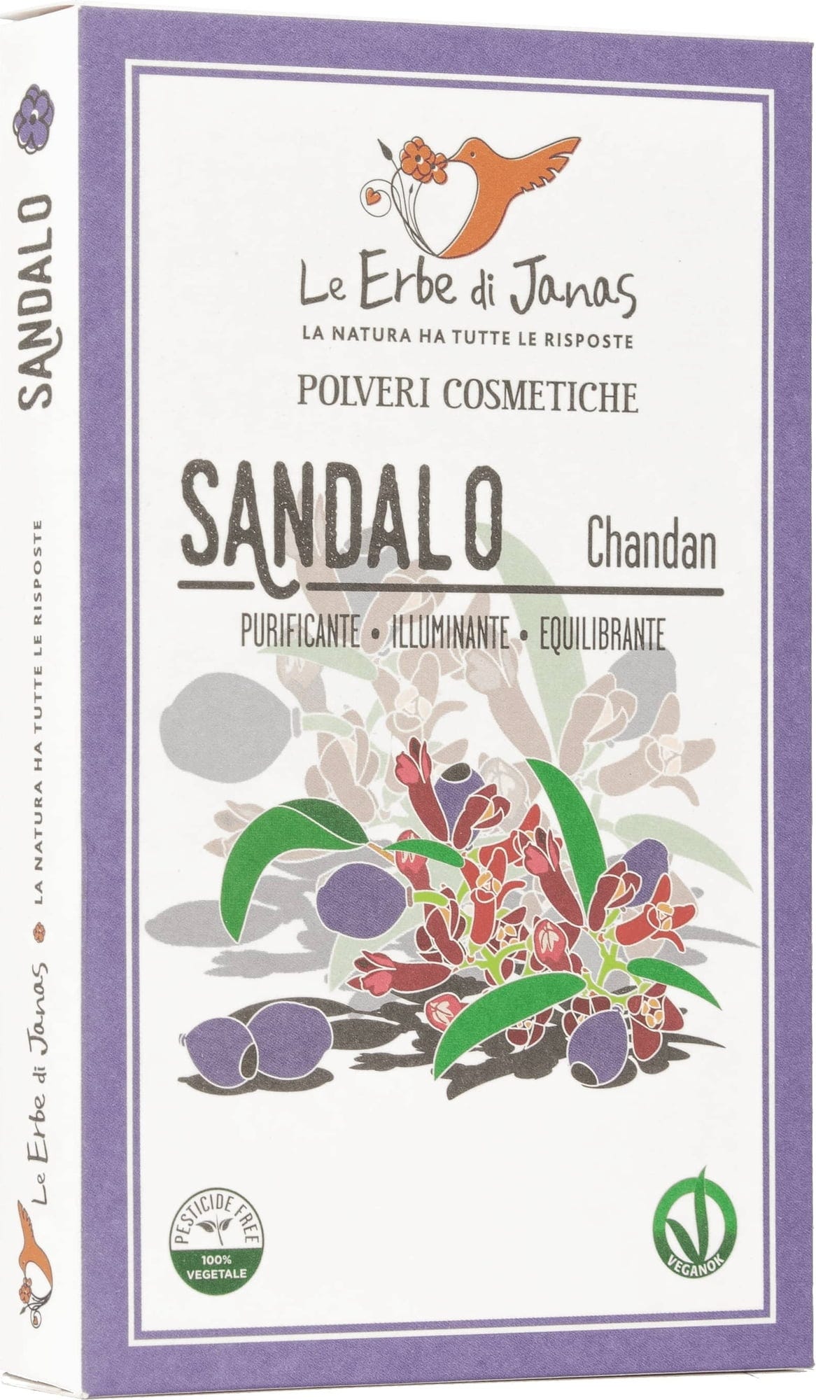 Le Erbe di Janas kombinerer i denne spesielle pleieblandingen sandeltre og leire (Multani Mitti/Fuller's Earth). Den tilbyr klarende, antimikrobielle, lysnende samt hudutjevnende egenskaper og er ideell for bruk som pleiemaske. Dessuten gir den en strålende hudtone.