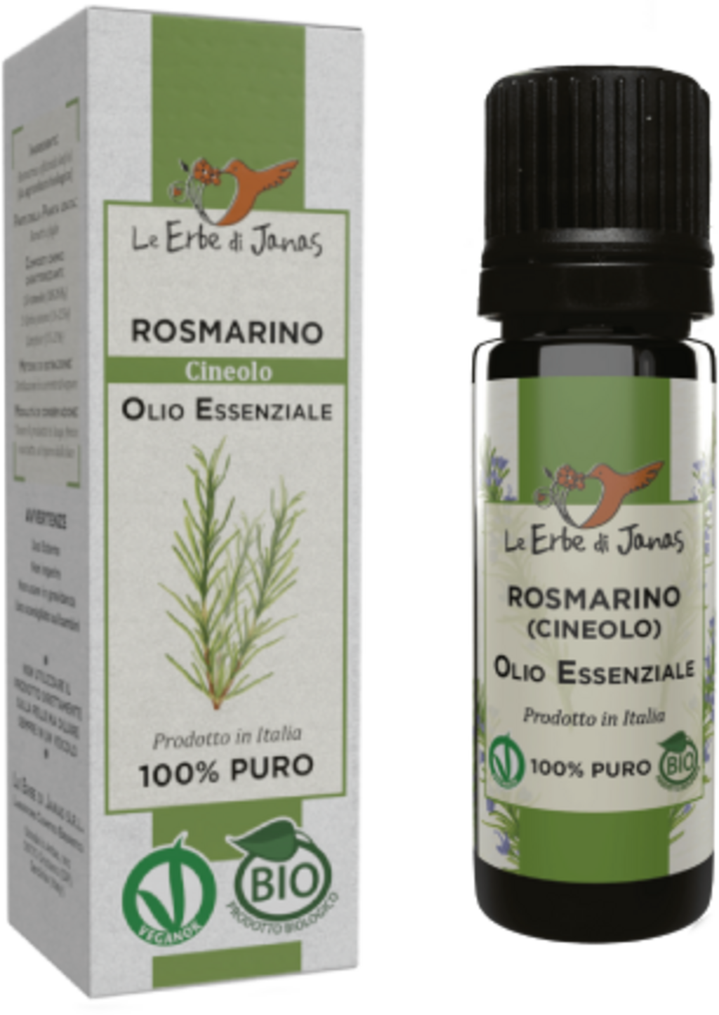 Rosmarin tilhører familien Lamiaceae (leppeblomstfamilien). Den eteriske oljen, som produseres av Le Erbe di Janas, er ren og i økologisk kvalitet, vegansk og utvunnet gjennom vanndampdestillasjon. Den mørke glassflasken beskytter innholdet optimalt mot lys.
