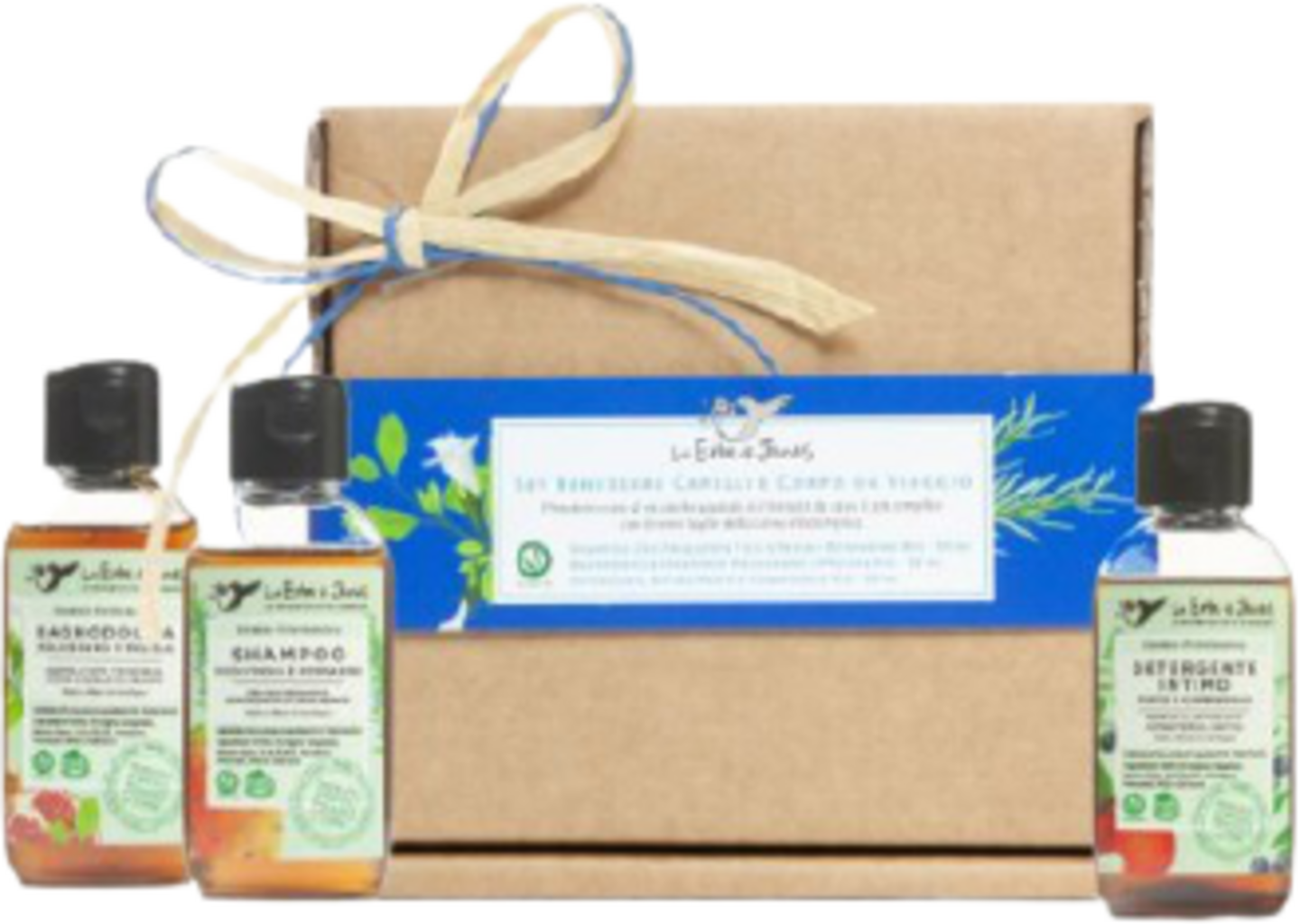 I dette flotte reisesettet finner du alt du trenger for naturlig rengjøring fra topp til tå. De aromatiske duftene av rosmarin, sitronmelisse og myrte gir en sanselig opplevelse og gjør dusjopplevelsen til noe spesielt, også når du er på reisefot.