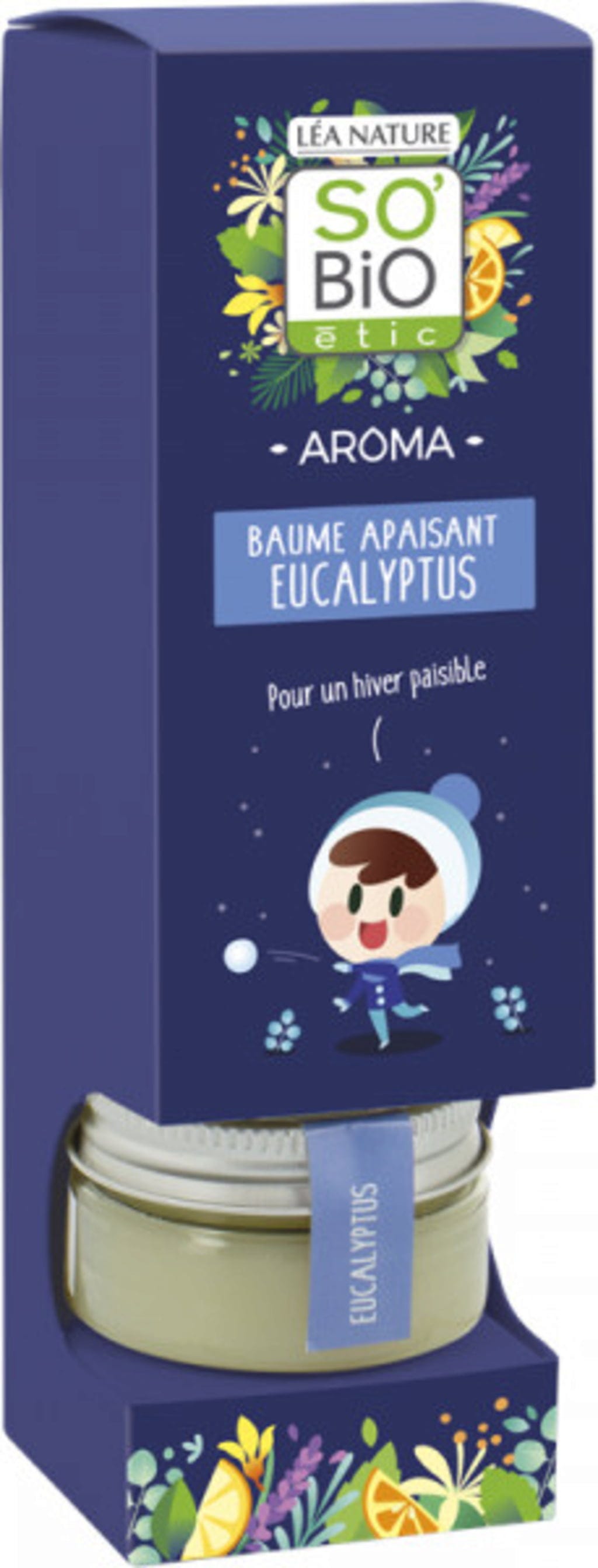 Eukalyptus-balsamen for barn er laget gjennom en synergi av tre eteriske oljer, og hjelper de små gjennom vinteren med ro og velvære. Dens duft har en befriende effekt på nesen og gir en forfriskende følelse.