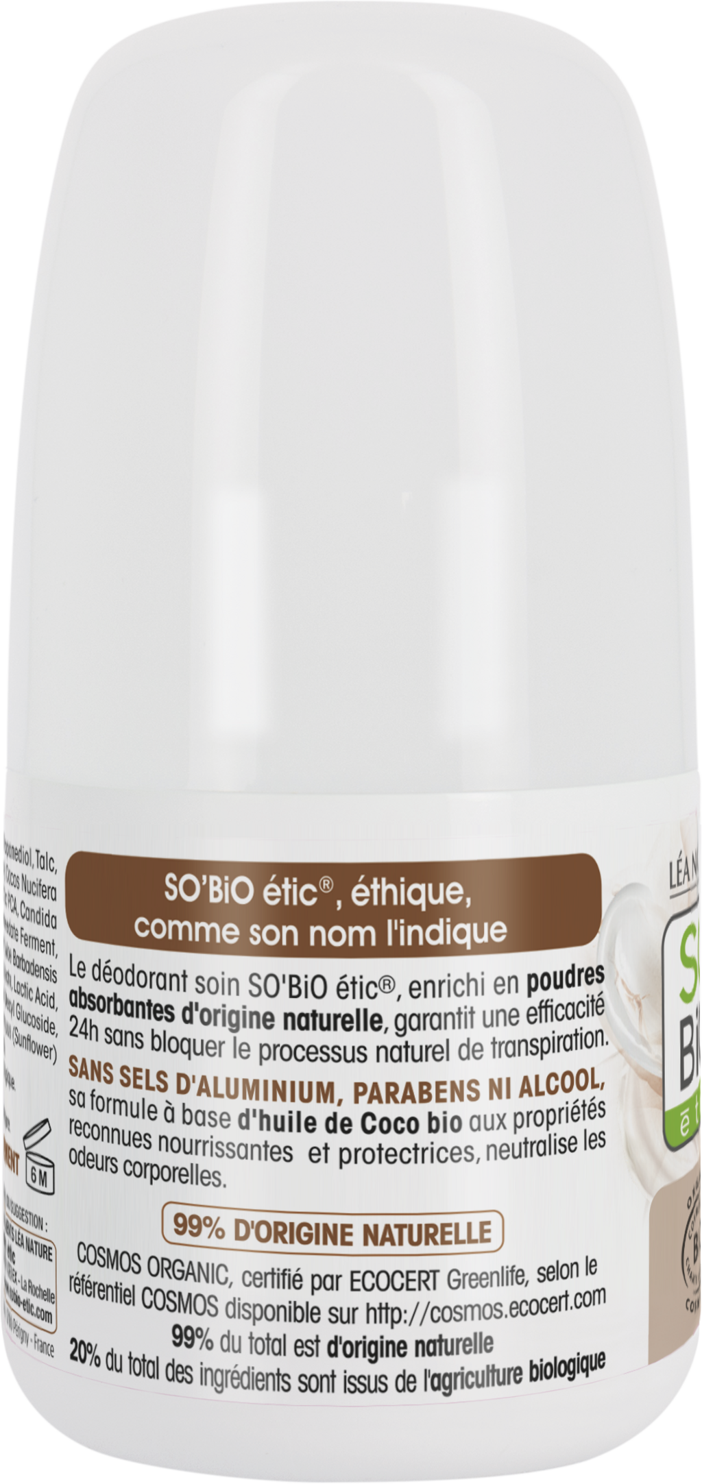 Den beskyttende deodoranten fra LÉA NATURE SO BiO étic er beriket med et plantepulver som absorberer fuktighet og gir langvarig beskyttelse uten å forstyrre den naturlige transpirasjonsprosessen. Den inneholder verken aluminiumsalter eller alkohol, og nærer den sarte huden med sin formulering av økologisk kokosolje mens ubehagelig kroppslukt blir nøytralisert.