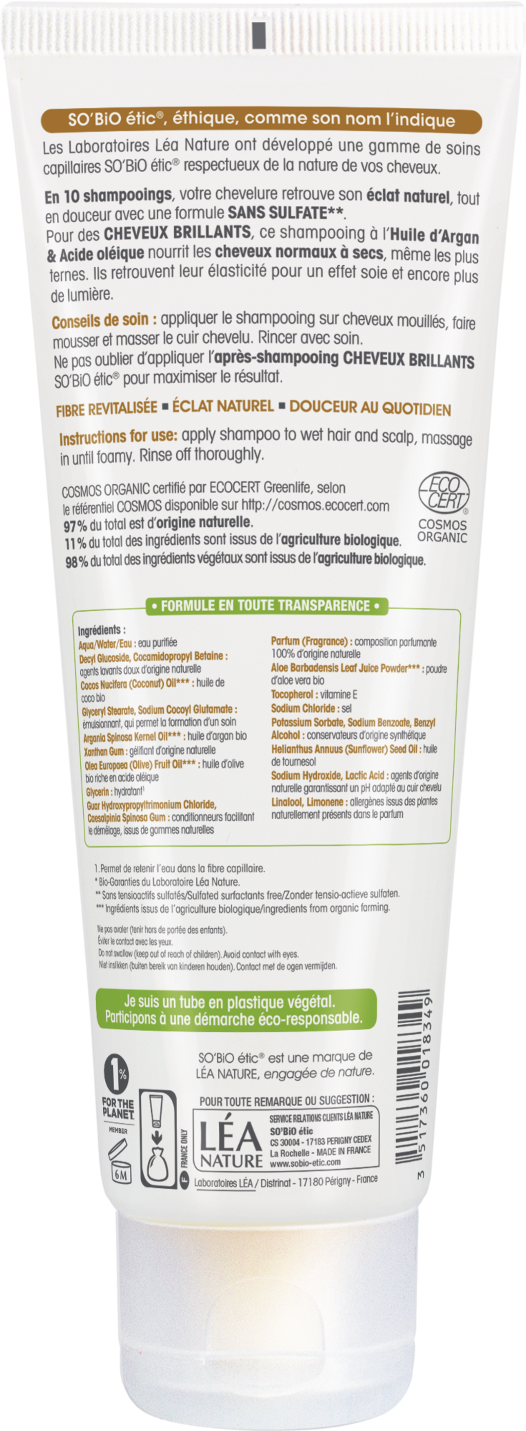 LÉA NATURE SO BiO étic Glanssjampo Argan + Oljesyre, 250 ml