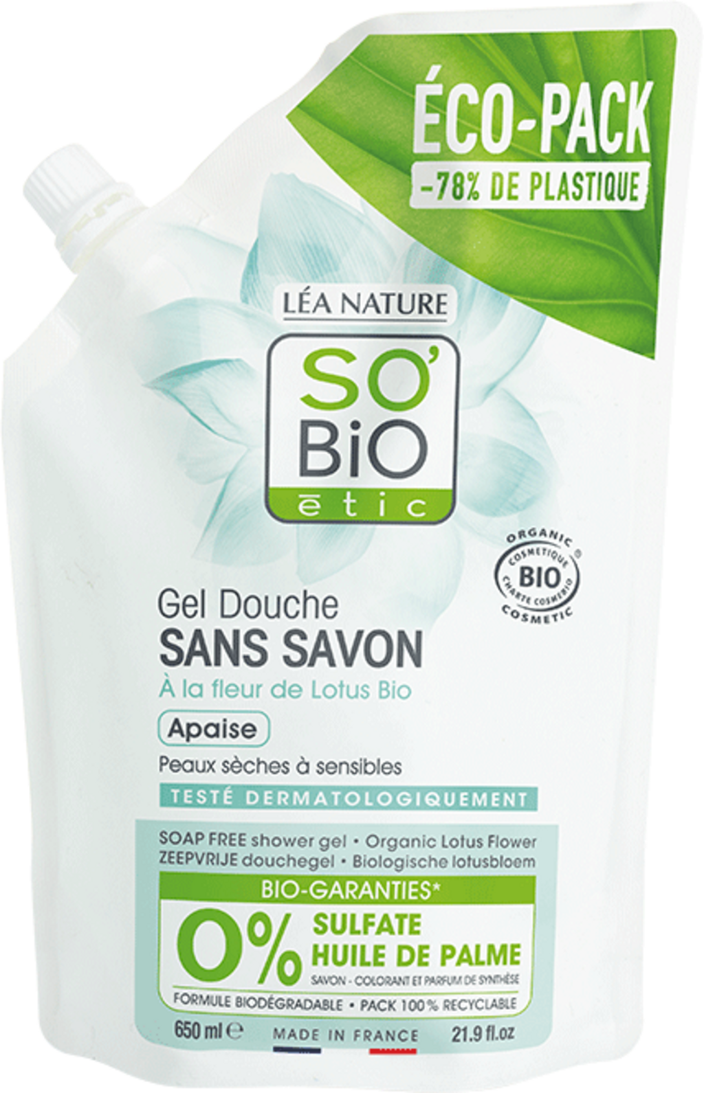 LÉA NATURE SO BiO étic Såpefri dusjgelé med økologisk lotusblomst, 650 ml refill