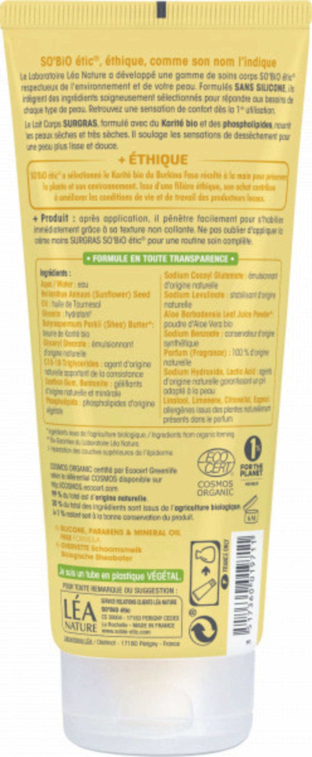 LÉA NATURE SO BiO étic har brukt håndplukket økologisk sheasmør fra Burkina Faso til dette produktet. Ved å støtte ansvarlige forsyningskjeder bidrar kjøpet av dette produktet til å forbedre leve- og arbeidsforholdene til de lokale produsentene.