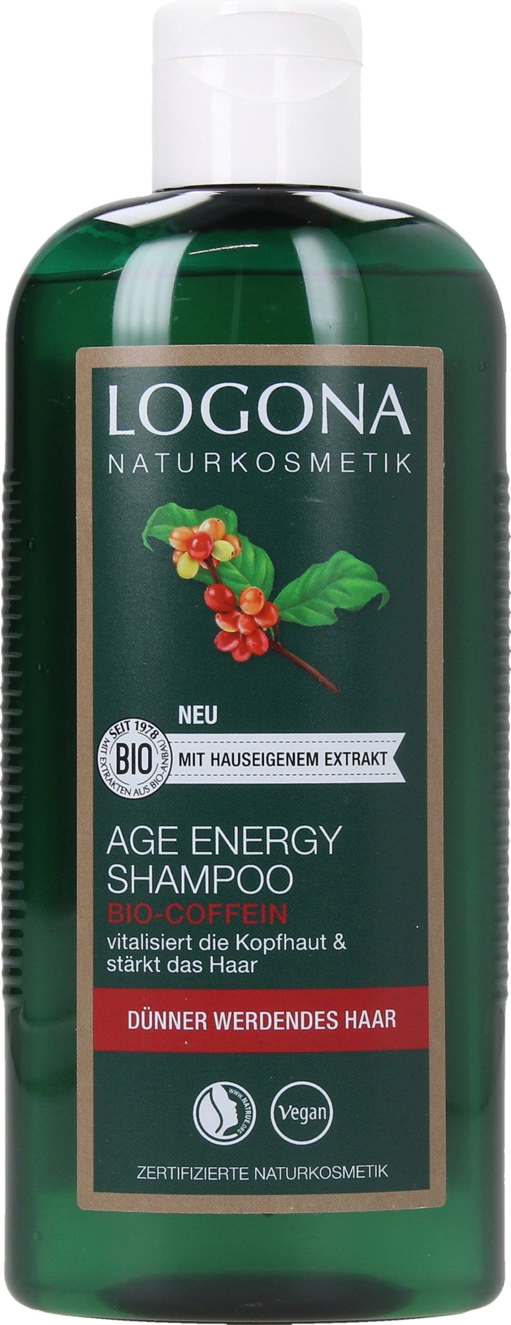 Age Energy Shampoo fra LOGONA er skapt for de spesielle behovene til fint hår. Den plantebaserte formelen med økologisk koffein, granatepleekstrakt og betain gir mer volum og elastisitet. De vaskaktive stoffene rengjør skånsomt, mens naturlig kiselsyre gir ekstra styrke til håret.